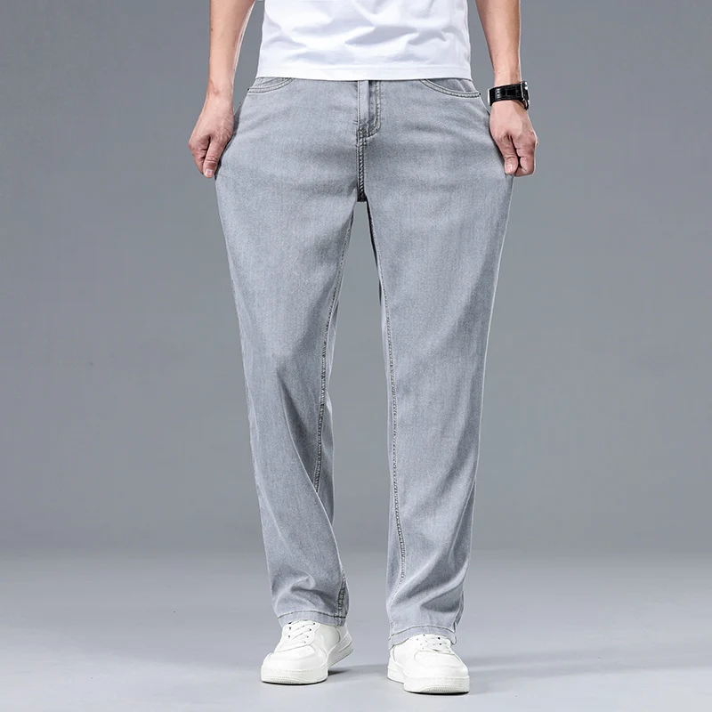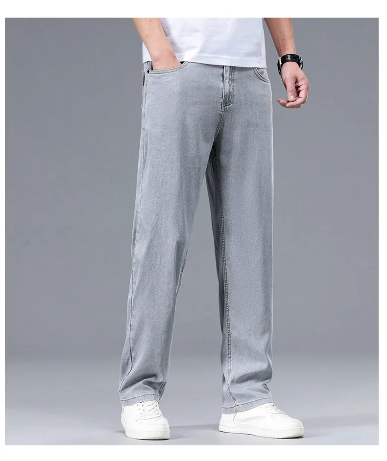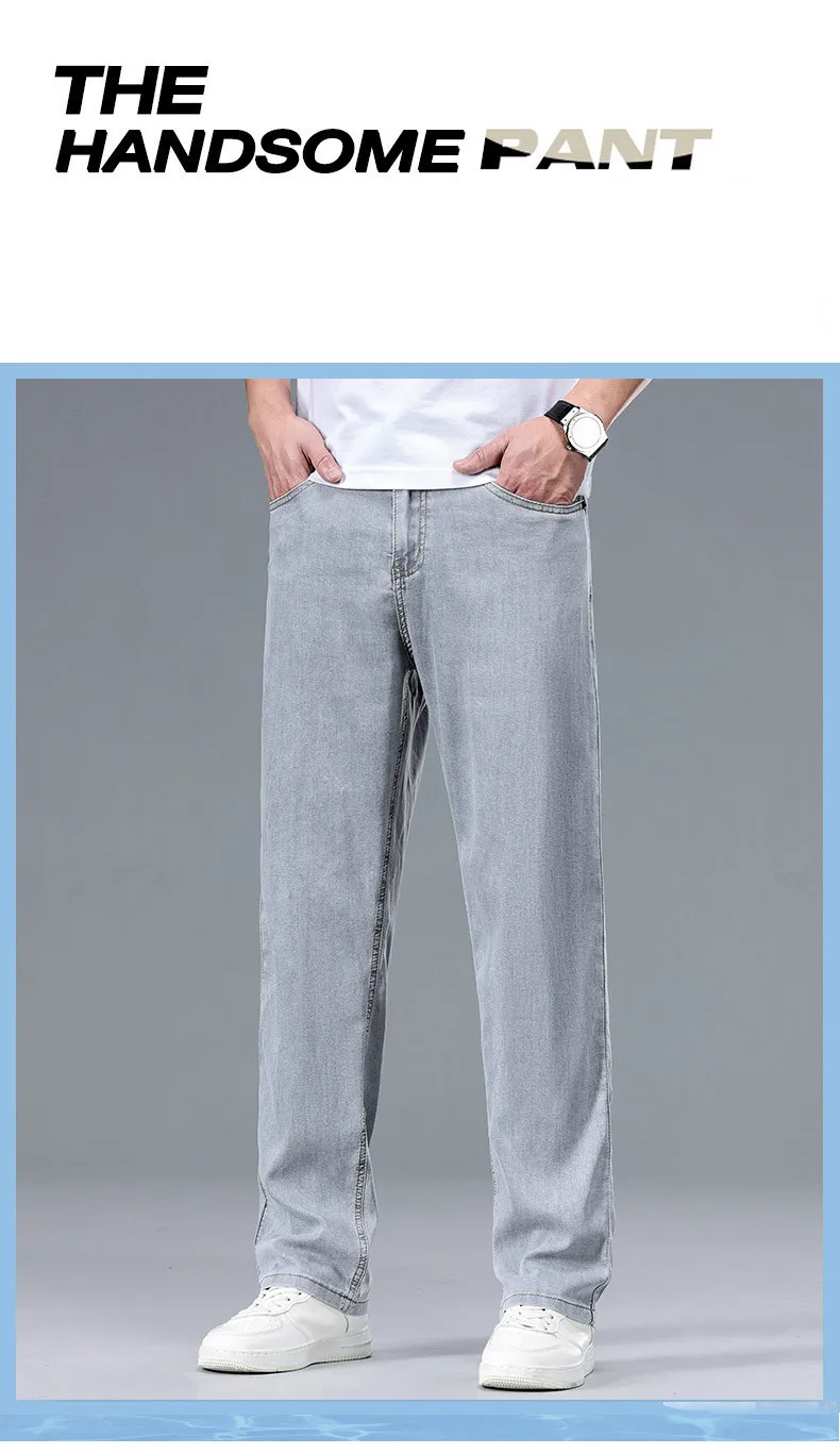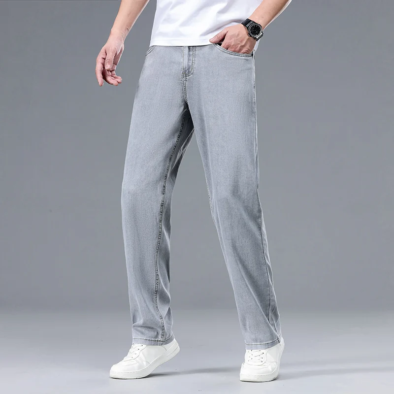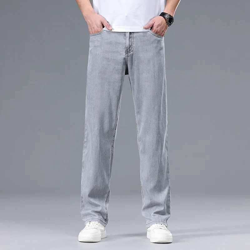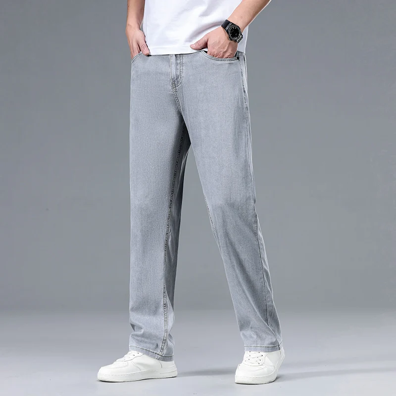 2025 Summer New Men’s Thin Baggy Jeans Office Business Casual Straight Denim Trousers High Waisted