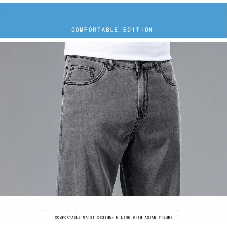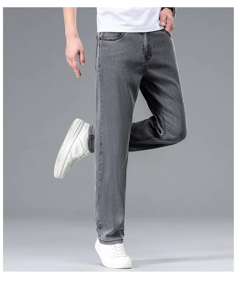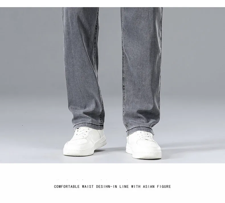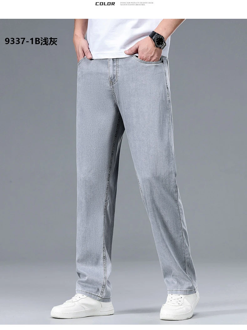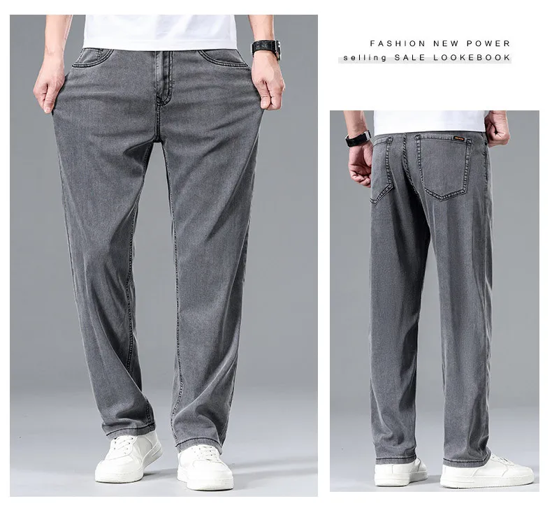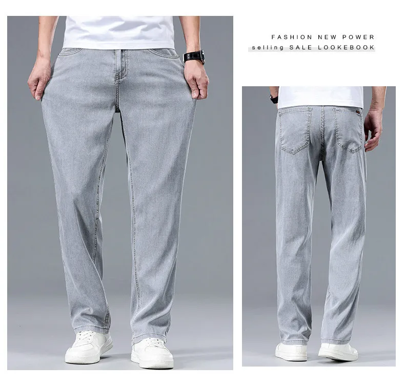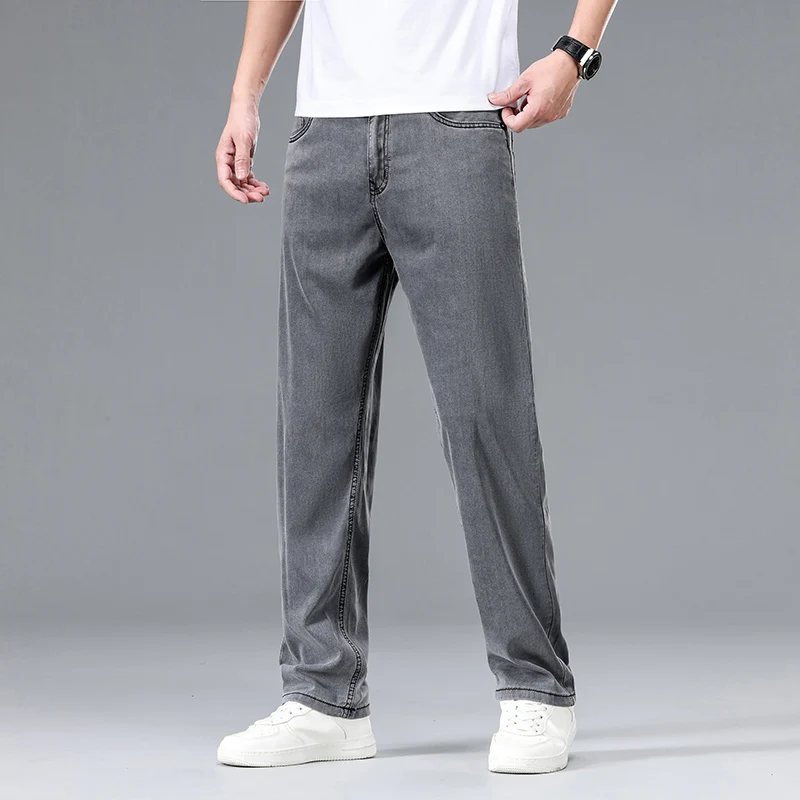 2025 Summer New Men’s Thin Baggy Jeans Office Business Casual Straight Denim Trousers High Waisted