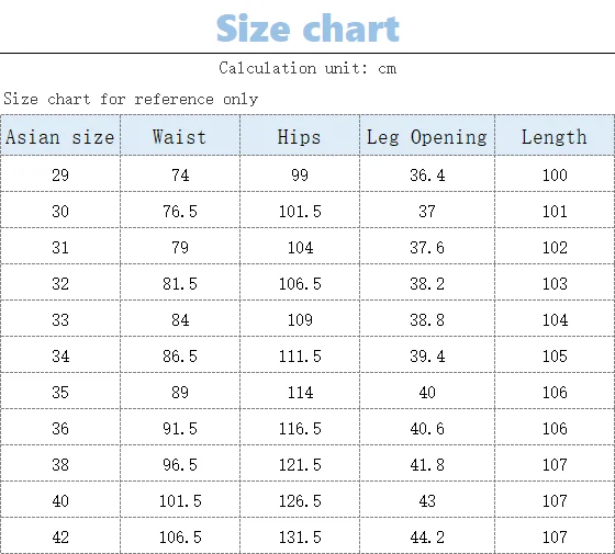| size_info | {"sizeInfoList":[{"length":{"cm":"74","inch":"29.13"},"size":"29","vid":-2},{"length":{"cm":"76.5","inch":"30.12"},"size":"30","vid":-3},{"length":{"cm":"79","inch":"31.10"},"size":"31","vid":-4},{"length":{"cm":"81.5","inch":"32.09"},"size":"32","vid":-5},{"length":{"cm":"84","inch":"33.07"},"size":"33","vid":-6},{"length":{"cm":"86.5","inch":"34.06"},"size":"34","vid":-7},{"length":{"cm":"89","inch":"35.04"},"size":"35","vid":-8},{"length":{"cm":"91.5","inch":"36.02"},"size":"36","vid":-9},{"length":{"cm":"96.5","inch":"37.99"},"size":"38","vid":-10},{"length":{"cm":"101.5","inch":"39.96"},"size":"40","vid":-11},{"length":{"cm":"106.5","inch":"41.93"},"size":"42","vid":-12}]} |