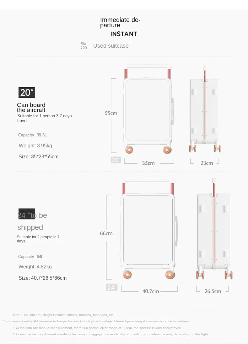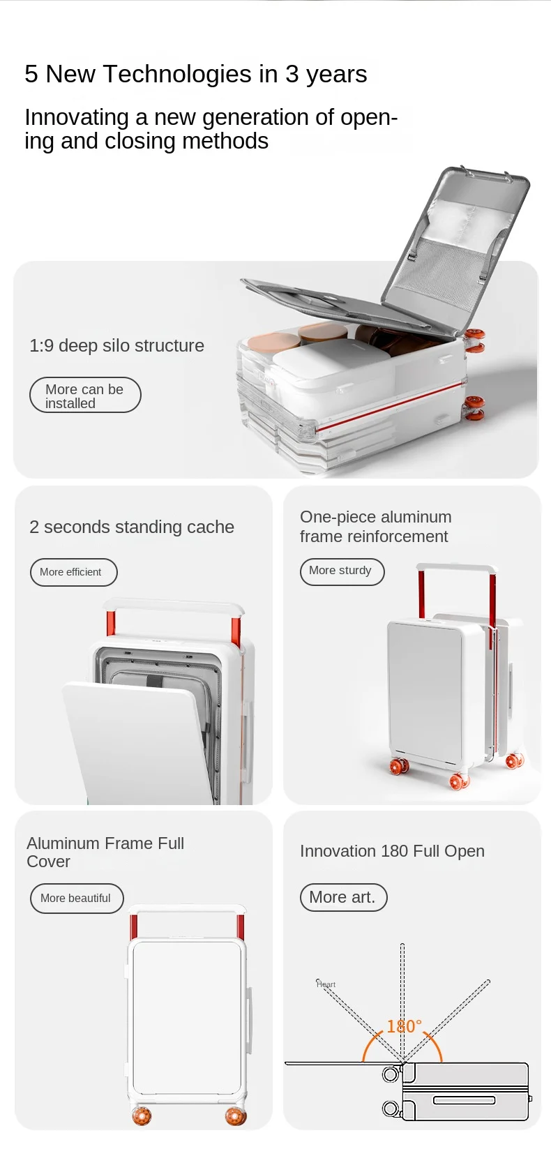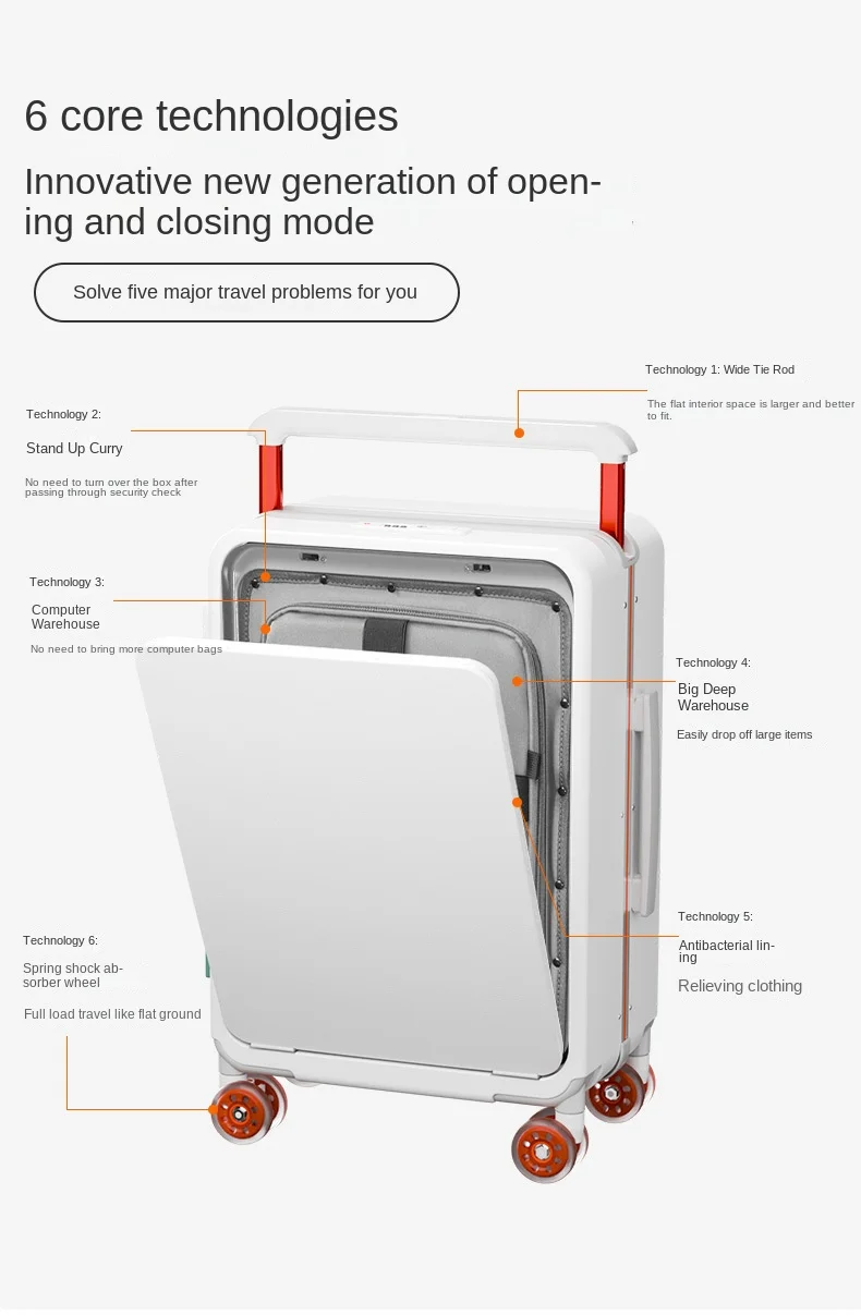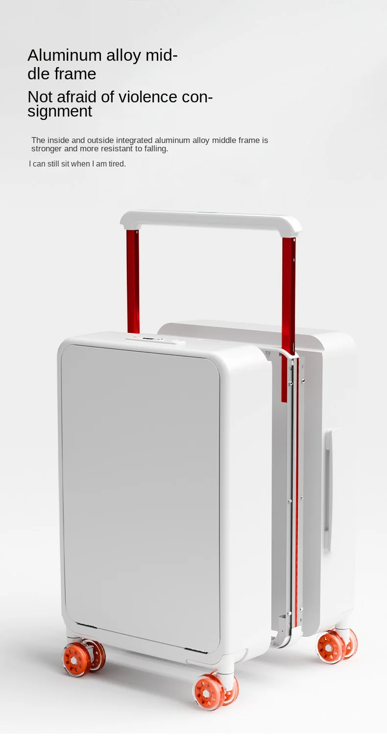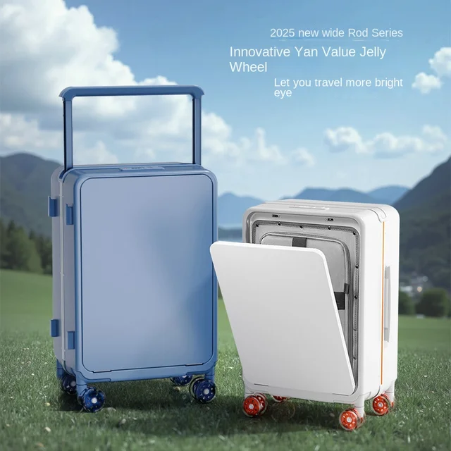 BunnyFly Suitcase Wide Handle Travel Suitcase Men 20 24 Carry-On Luggage Women PC Aluminum Frame Trolley Case