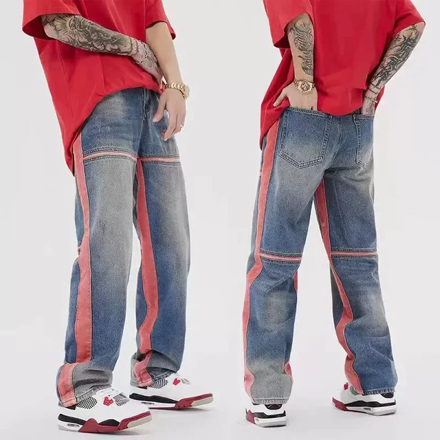 2025 Vintage Men's Jeans Distressed Vibe Bell Bottoms Clean Fit Woodworking Workwear Denim Pants for Outdoor Trade