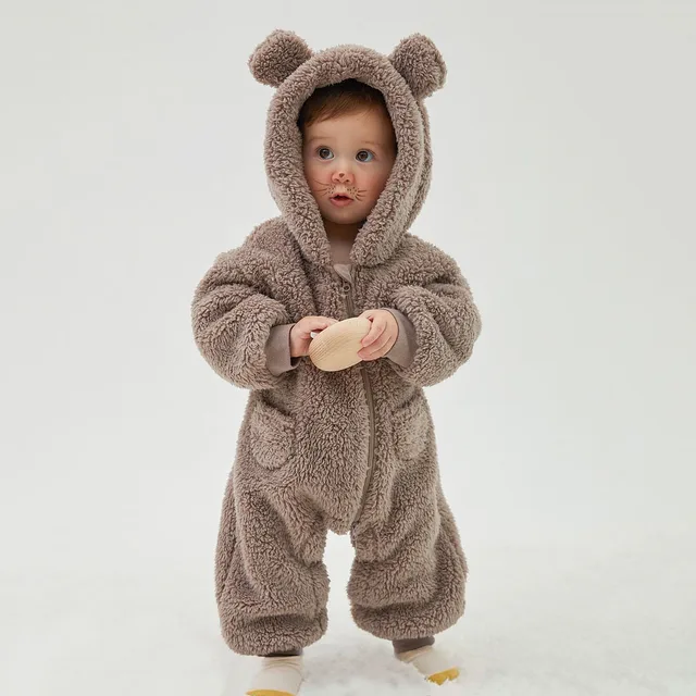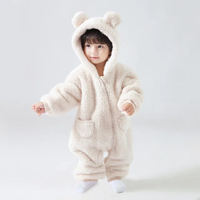 2025 Warm Fleece Hooded Jumpsuits for Baby Autumn Winter Long Sleeve Infant Rompers Newborn Boy Girl Homewear Pajamas