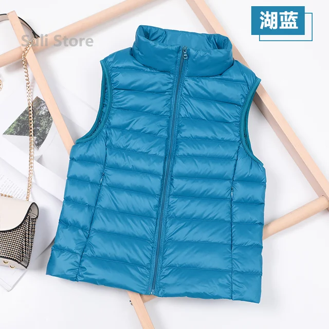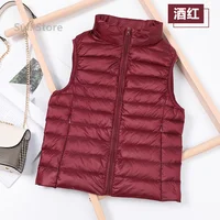 Female White Gilets Windbreaker Down Coat Winter Down Vest Women Short Sleeveless Vest Jacket Lightweight Bodywarmer Waistcoat