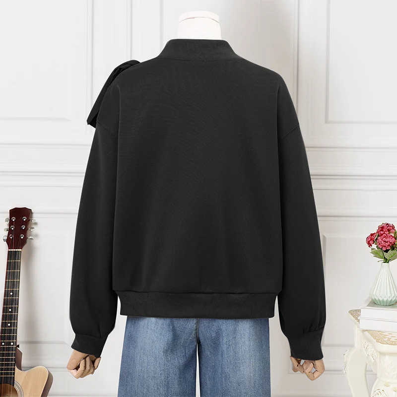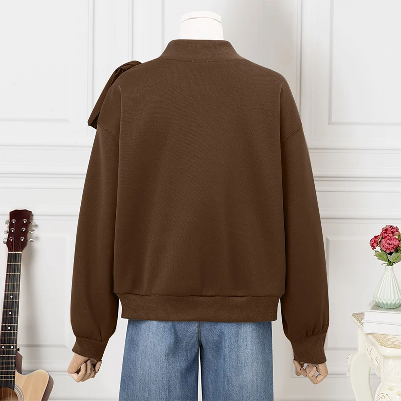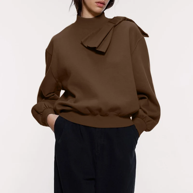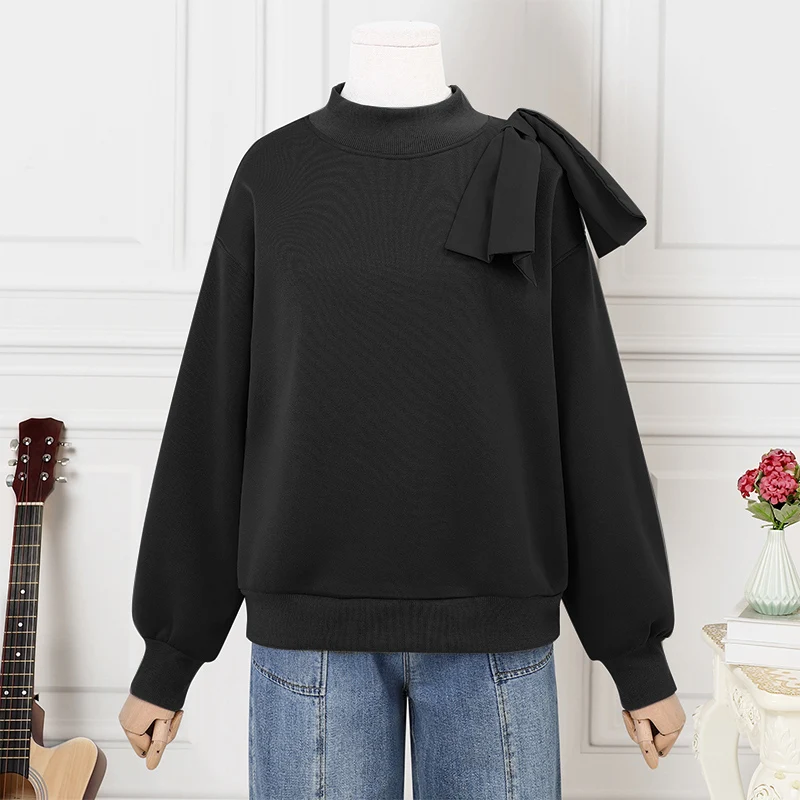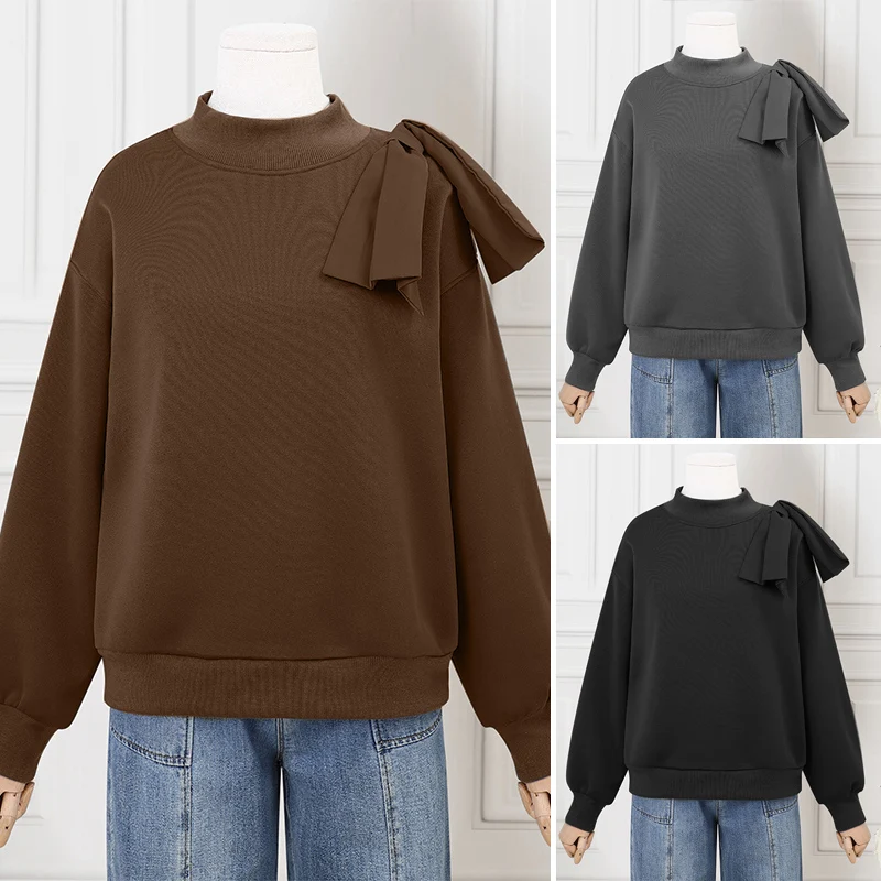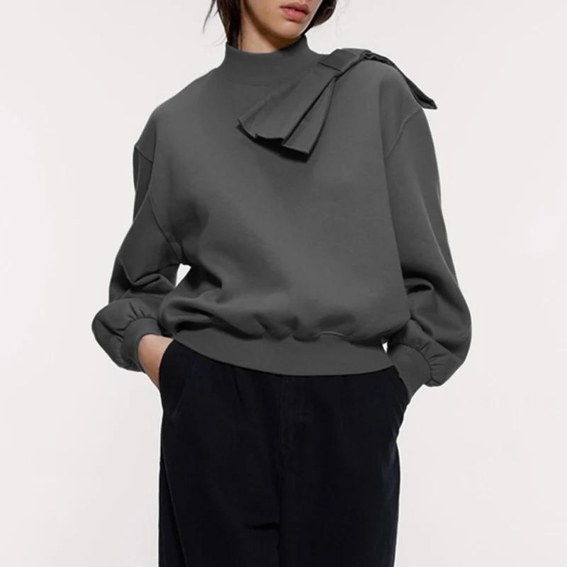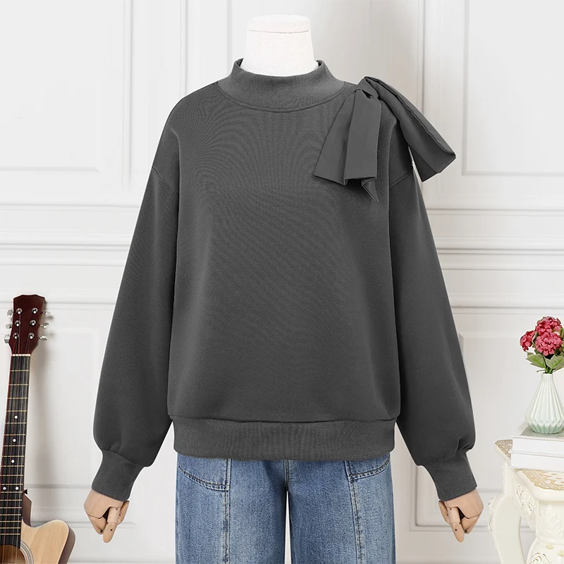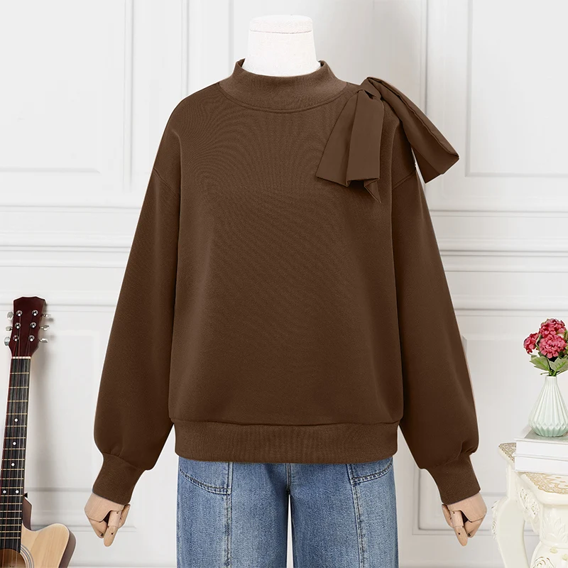 Female Oversized Pure Color Casual and Versatile Crewneck Long Sleeve Pullover Tops Basic Daily Comfortable Hoodie