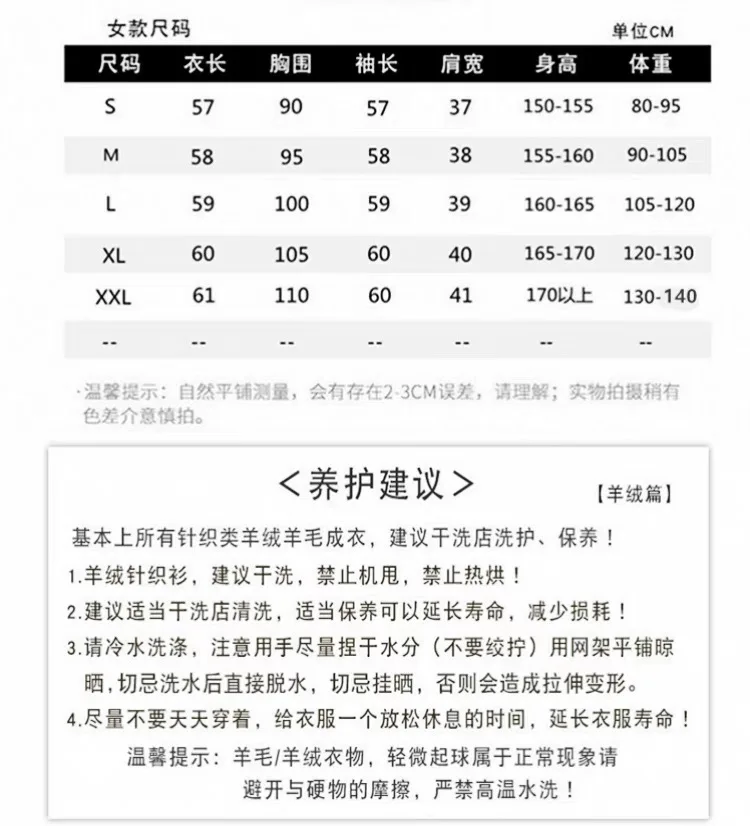 Because the sweater is manual measurement, there may be 1-2 cm error