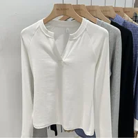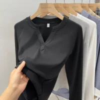 2025 Women’s Basic Style Slim Fit V-Neck Long Sleeve T-Shirt Korean Style Versatile Simple Base