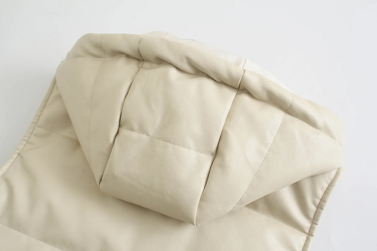 Women's Fleece Lined Thickened down Cotton Vest Loose Fit Autumn Winter Warm Shoulder Pad Jacket Hooded Solid Color Casual Outer