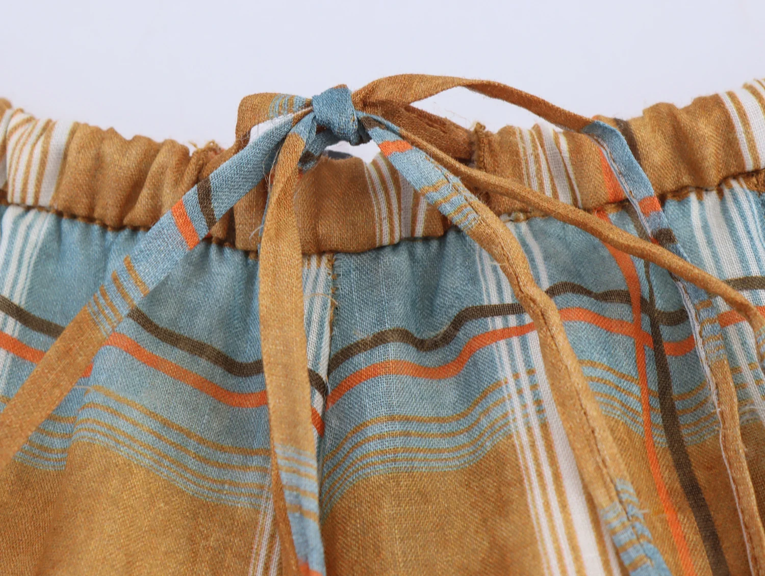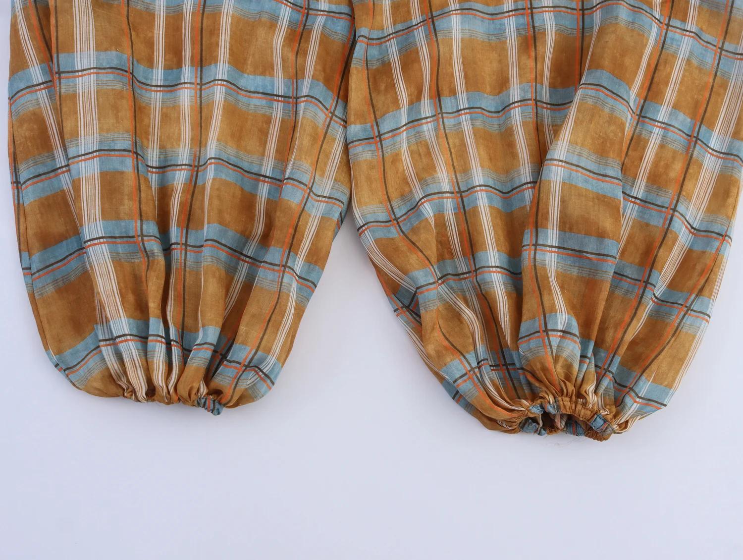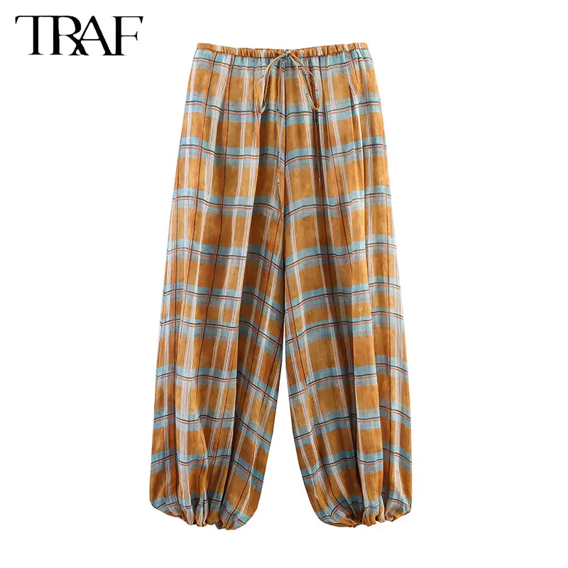 2025 Women’s Pants Check Balloon Trousers for Woman Mid-Rise Elasticated Drawstring Waistband Loose