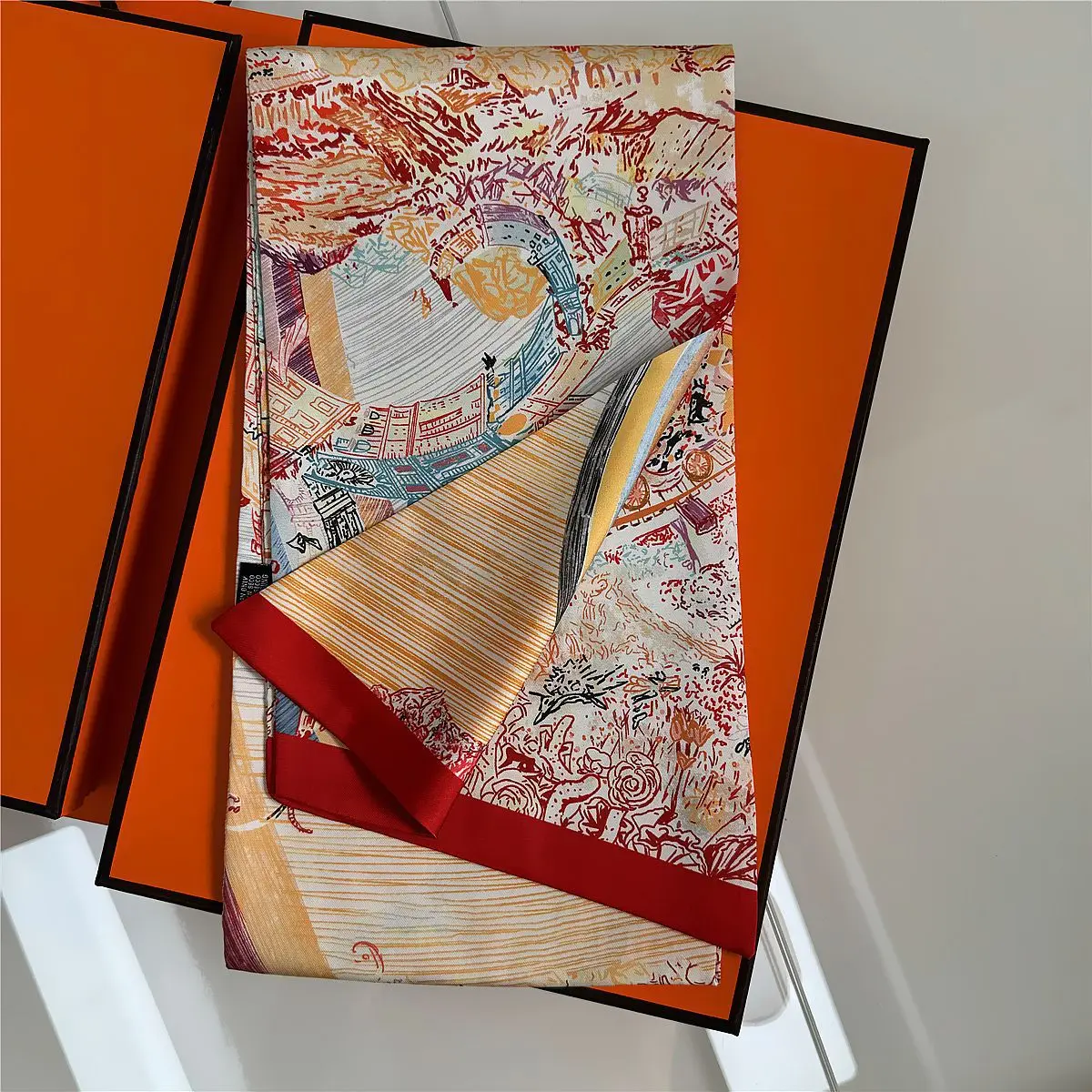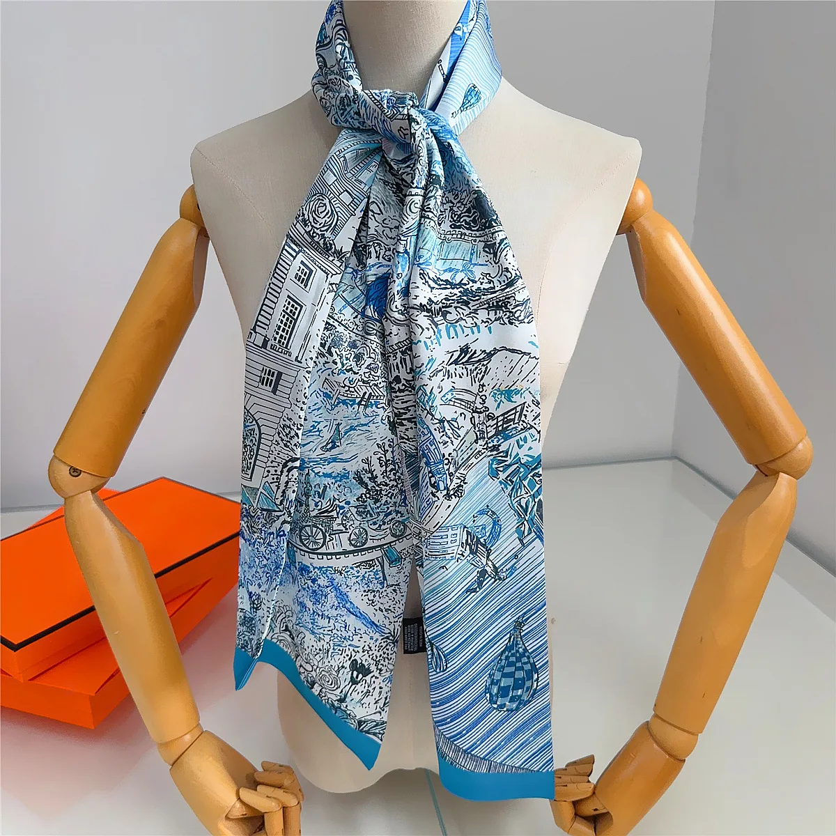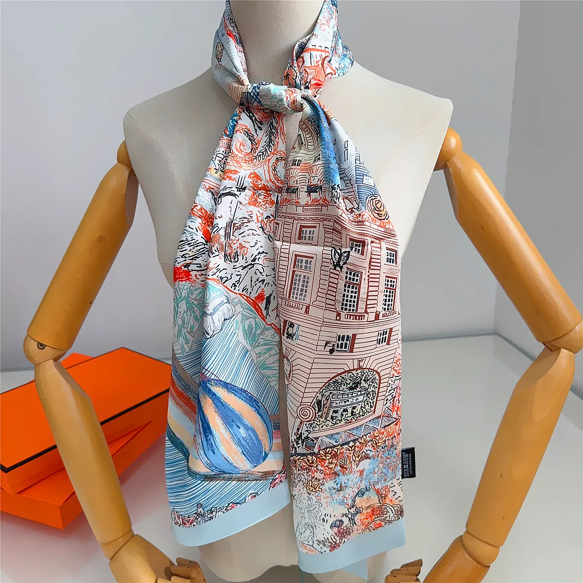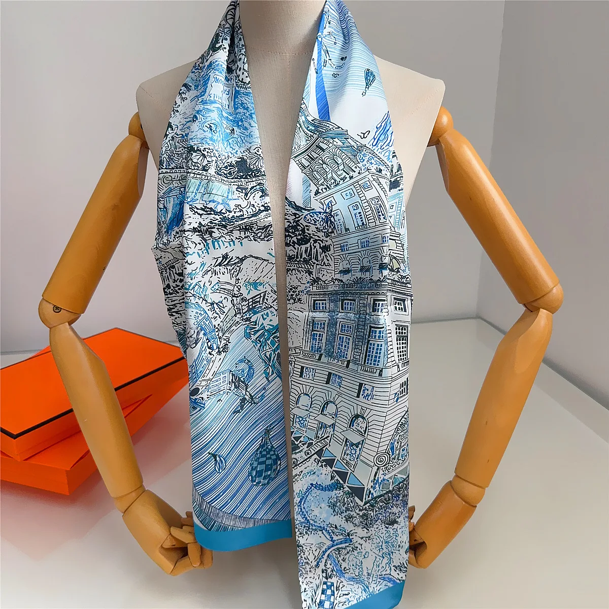 2025hot French New Urban Architecture Women Versatile Double-layer Printing Internet Celebrity Strip Decorative Twill Scarf Gift