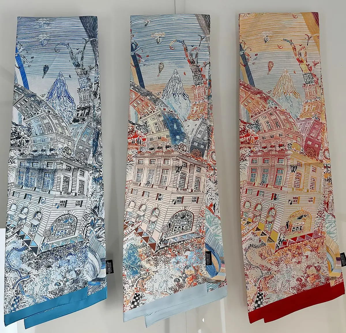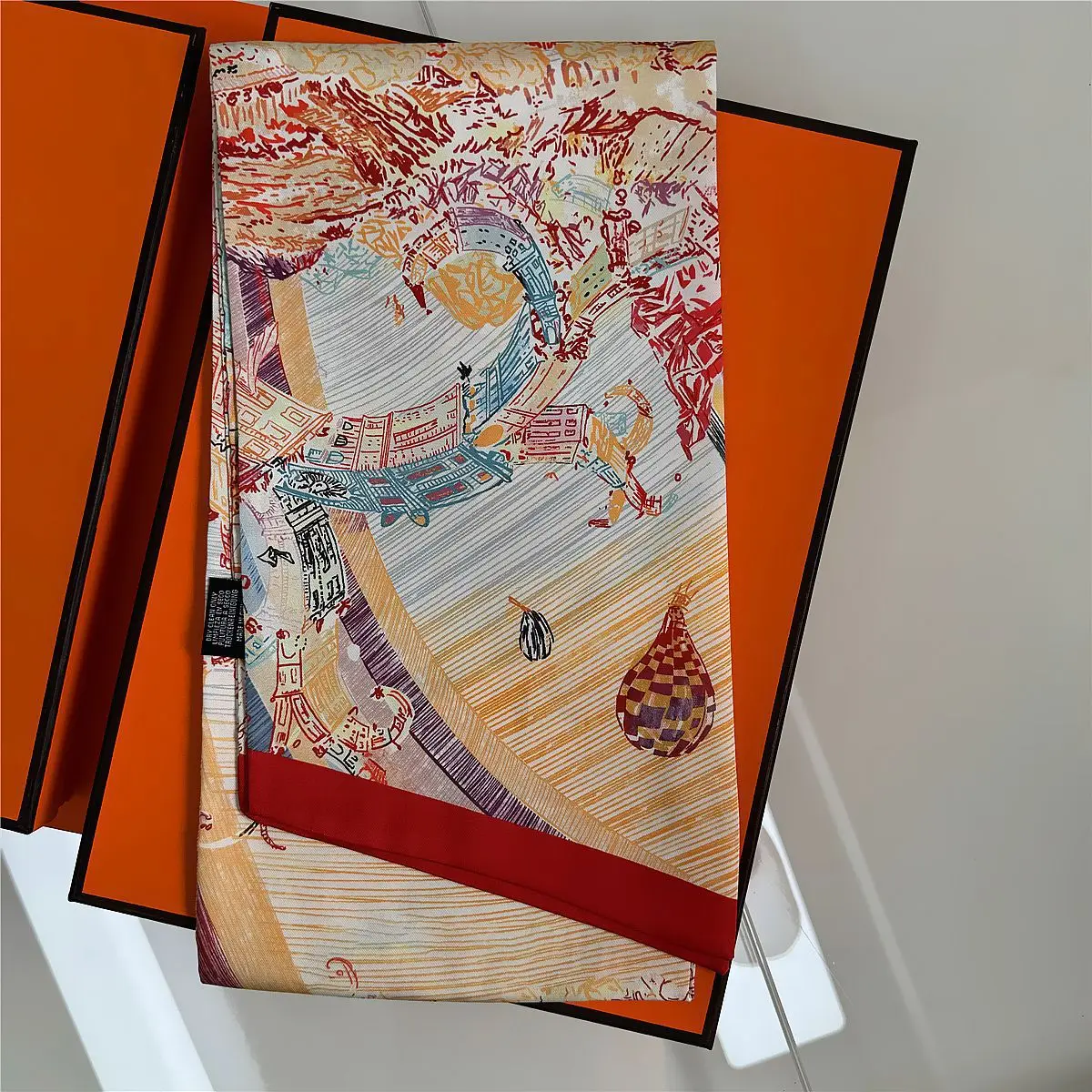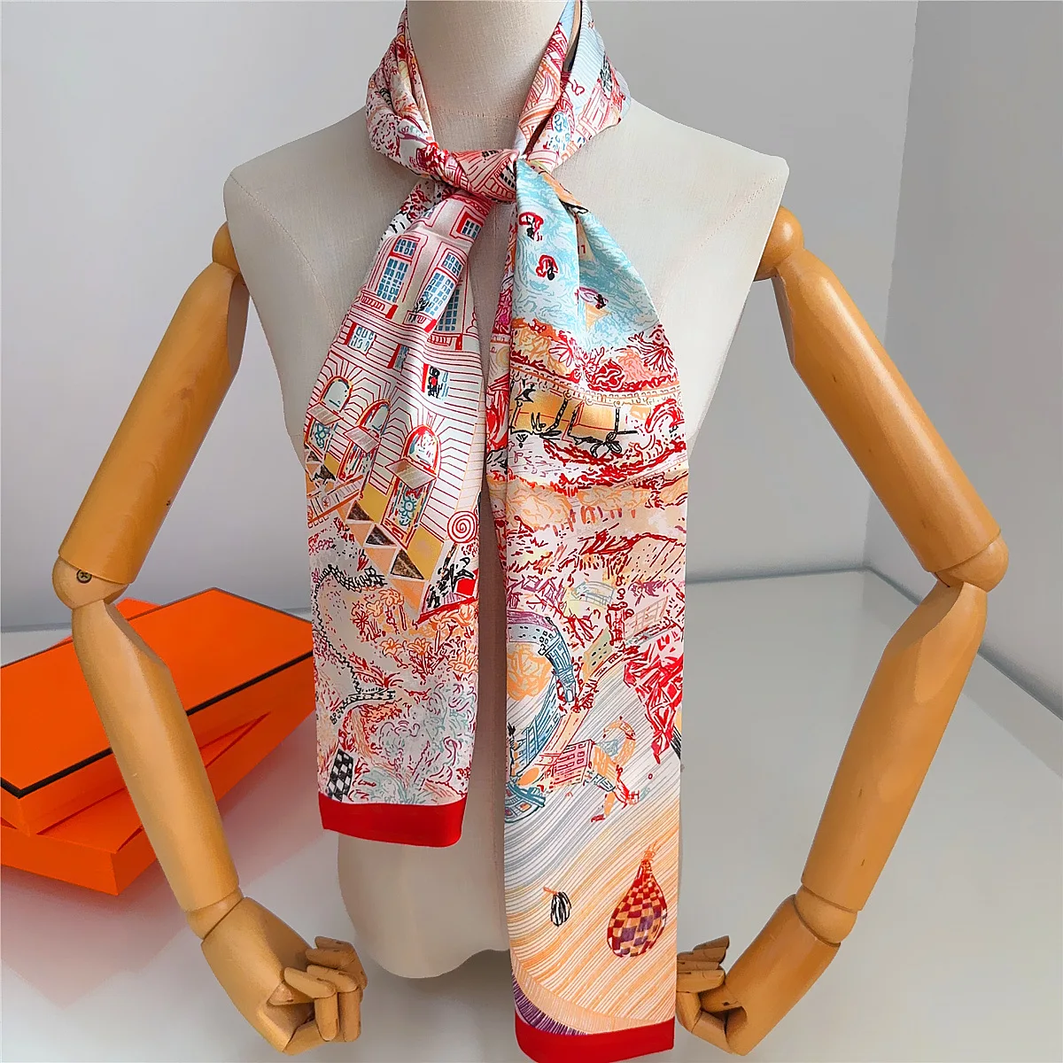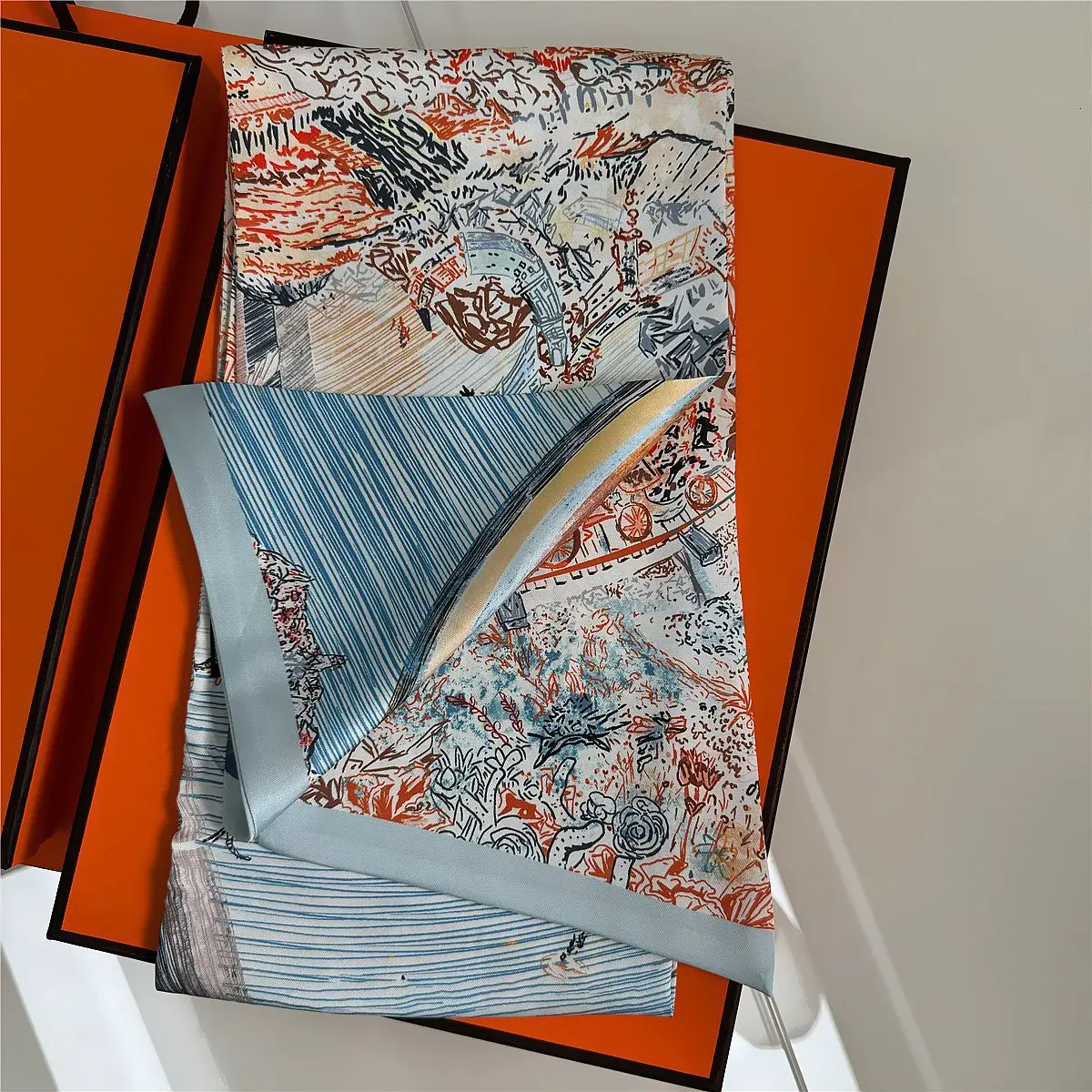 2025hot French New Urban Architecture Women Versatile Double-layer Printing Internet Celebrity Strip Decorative Twill Scarf Gift