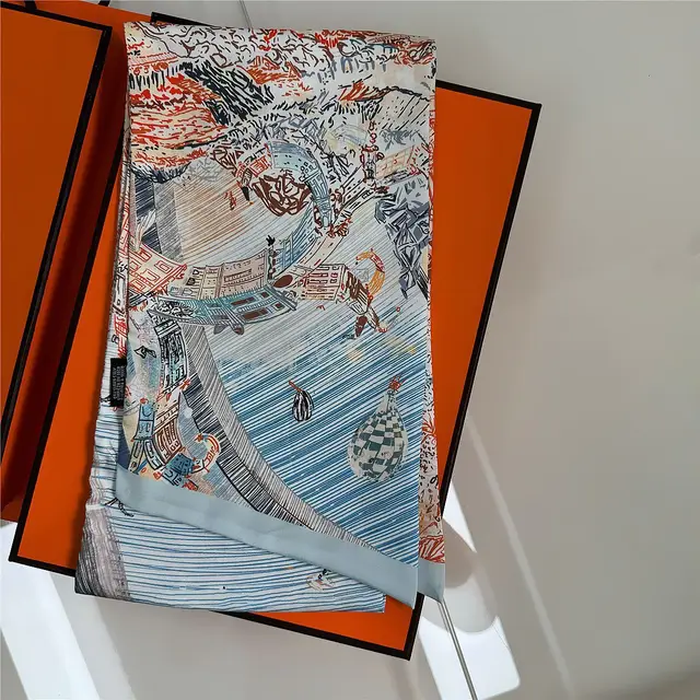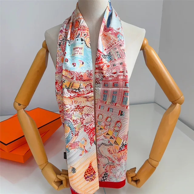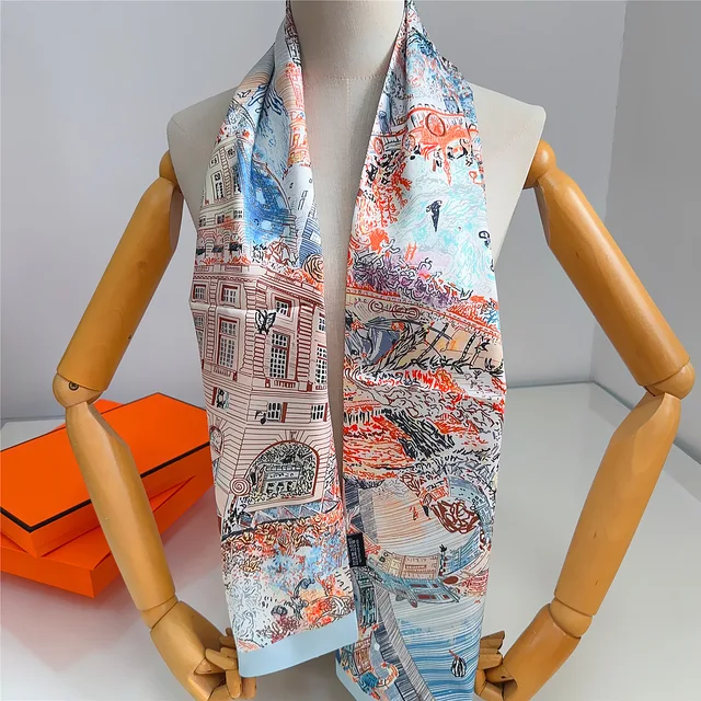 2025hot French New Urban Architecture Women Versatile Double-layer Printing Internet Celebrity Strip Decorative Twill Scarf Gift