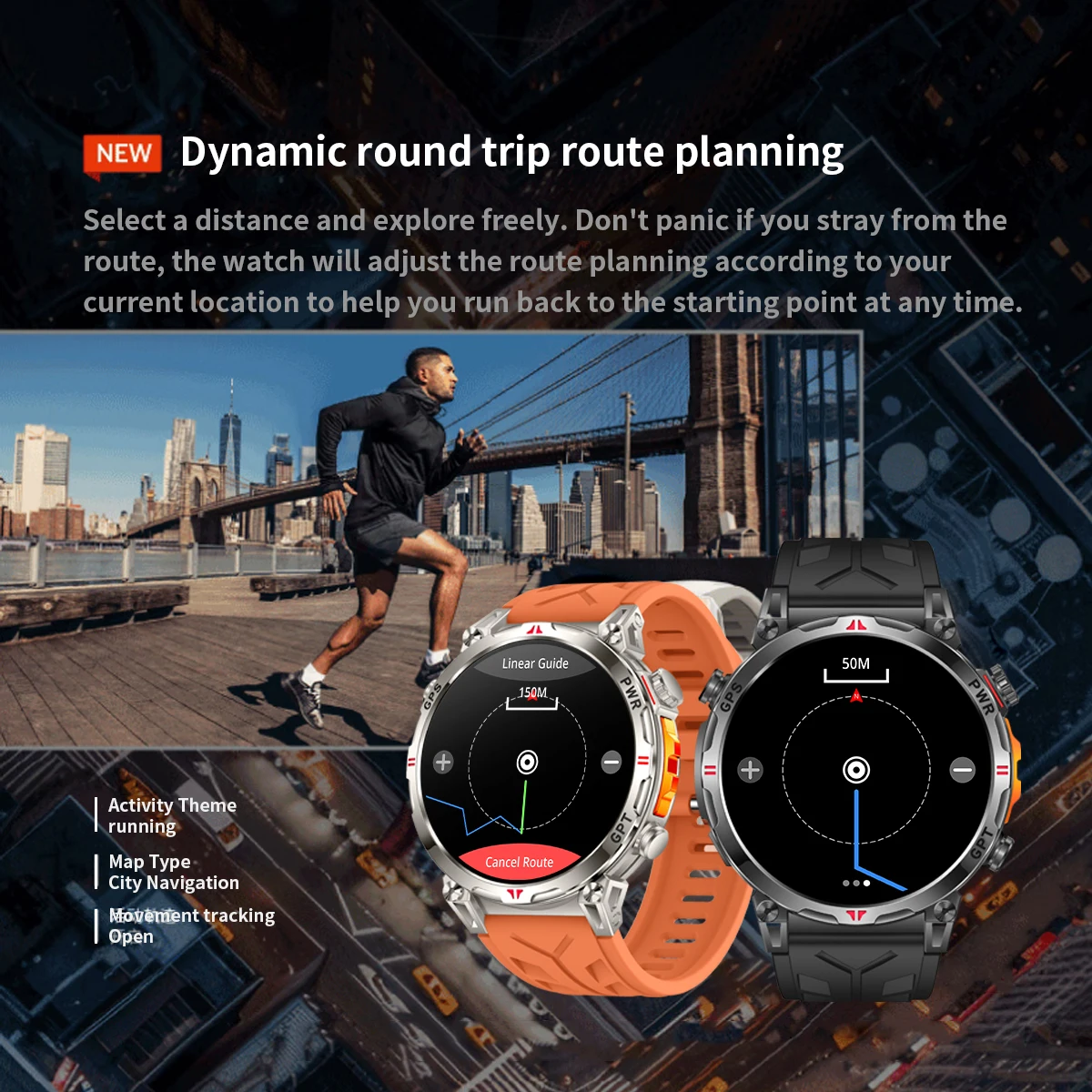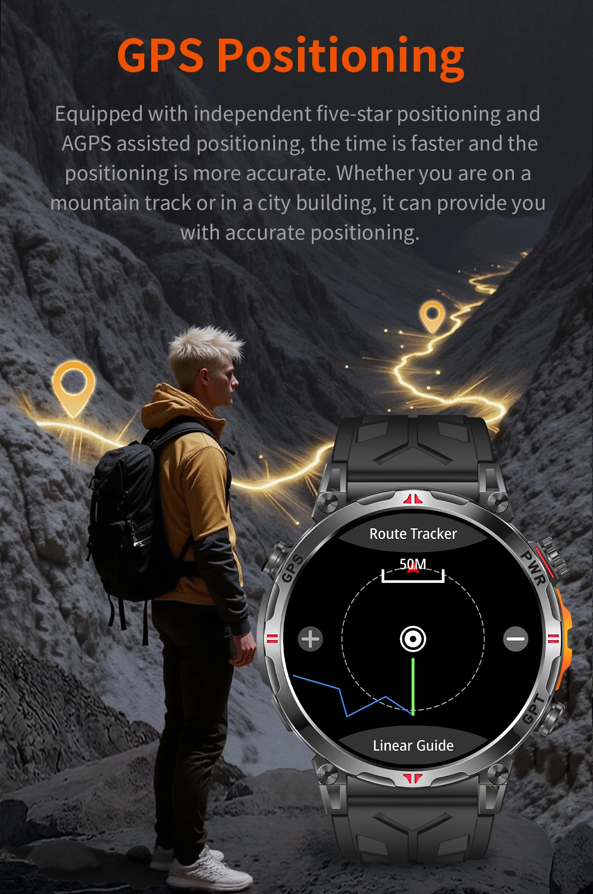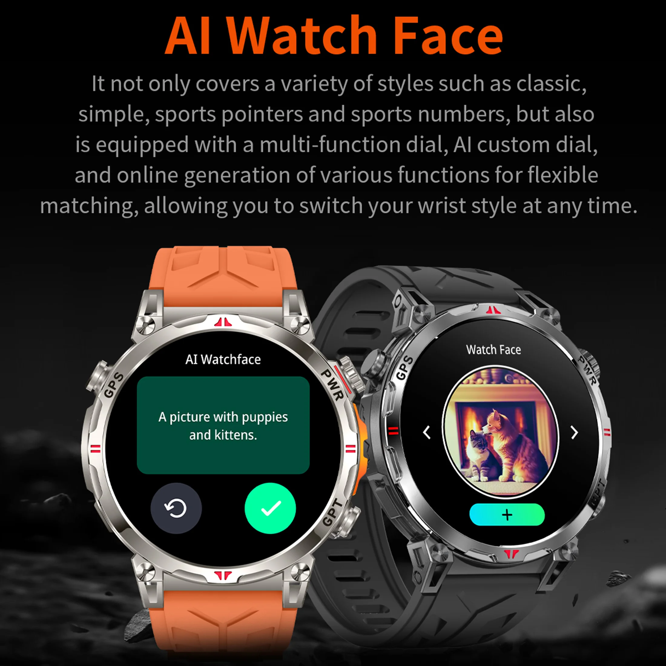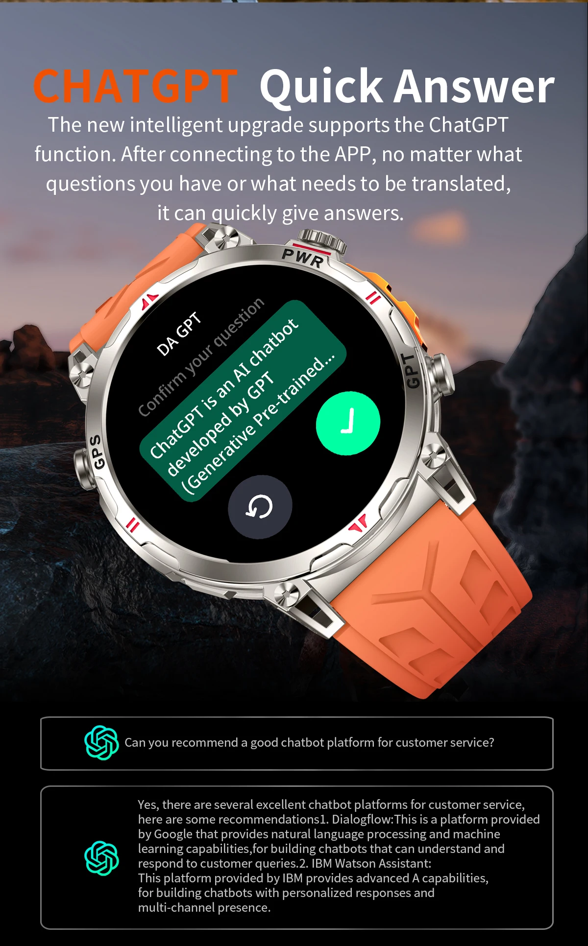 Built in GPS。Supports voice assistant, AIdial,CHAT GPT,Bluetooth call making function, calculator , game,Flashlight ,Altitude pressure compass.