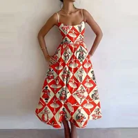 Bohemian Long Summer Dress Casual Lantern Sleeve round Neck Dress Polyester Fiber Mid Waist Print Patchwork Urban Casual Style