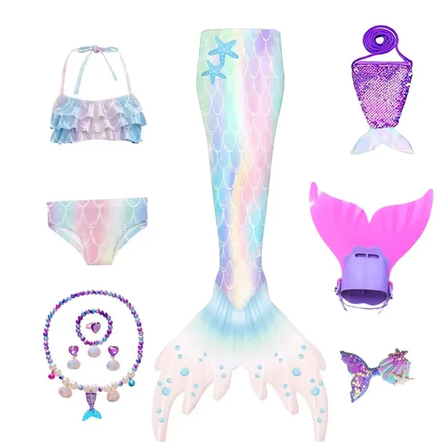 Style 1:6 pcs/set (mermaid tail TUPE tops underwear fins necklace set headwear)