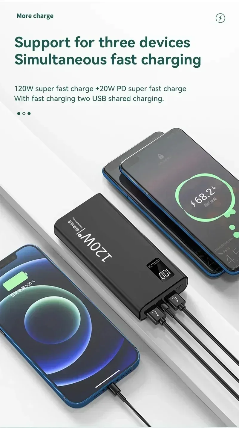 500000mAh 120W Super Fast Charging High Capacity Power Bank External Battery Portable Battery Charger For iPhone Samsung Xiaomi