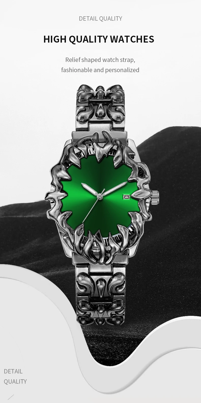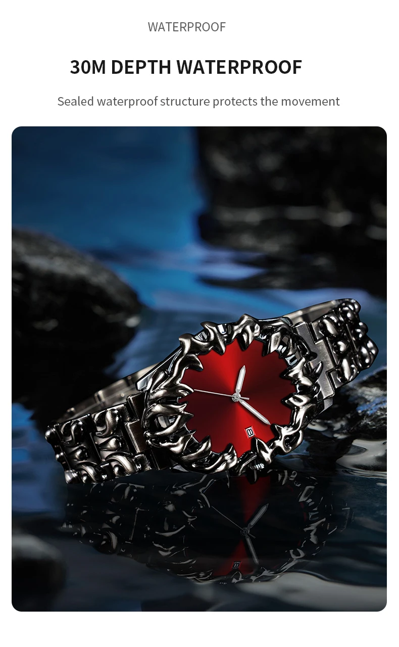 2026 New Men Watch Technology Style Silver Stainless Steel Relief Clock Quartz Movement 3Bar Waterproof