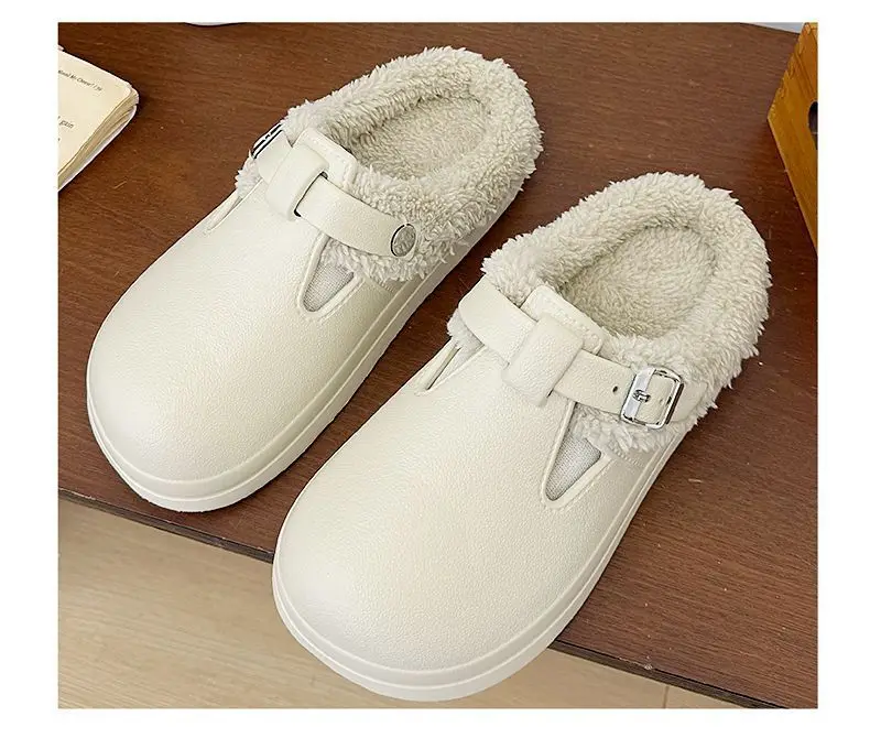 Women's Fleece Lined UGG Slippers Autumn Winter New Style Retro Slip on Indoor Outdoor Fashionable Birkfoot Cotton Low Top