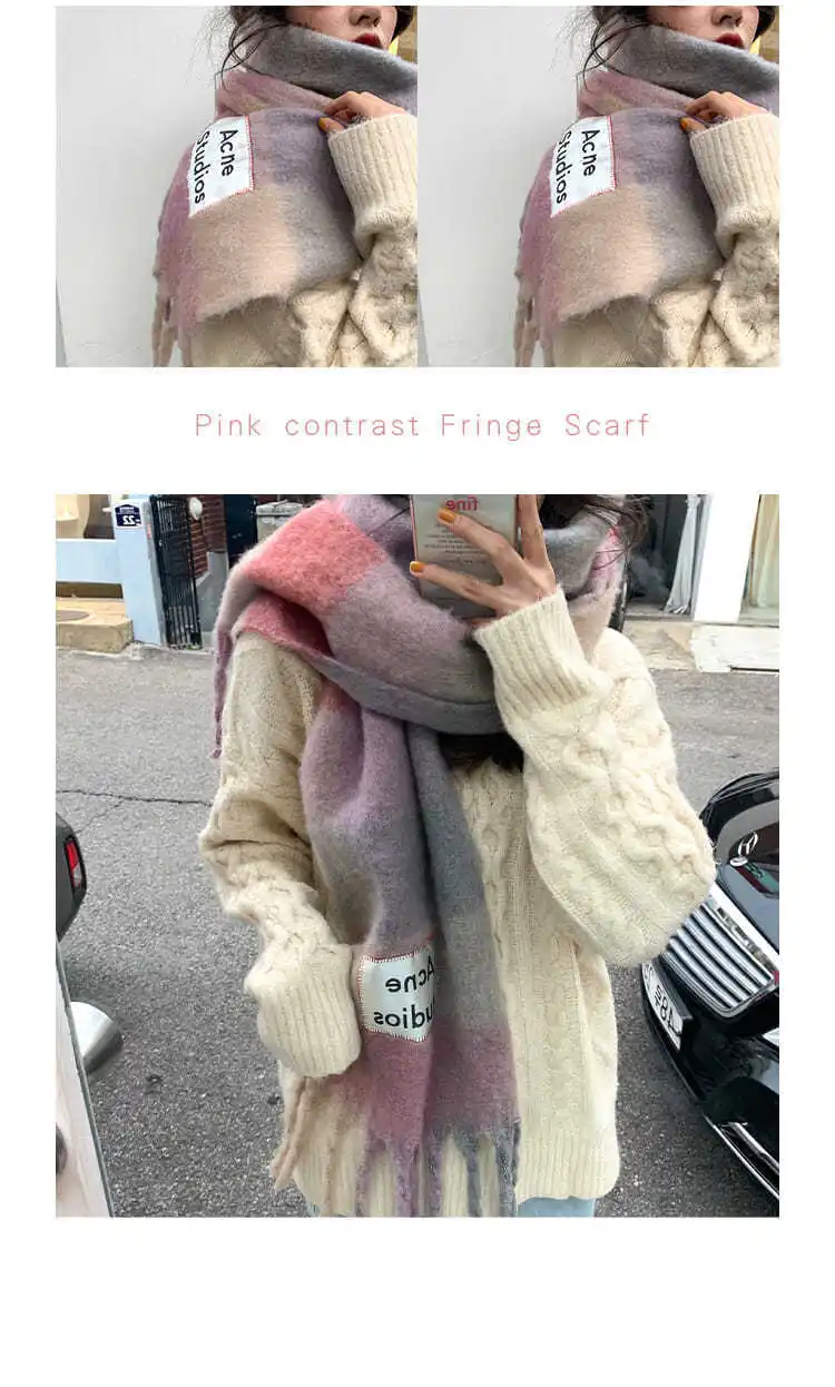 2026Korean version rainbow fringe square couple shawl with contrasting colors, warm scarf, women’s