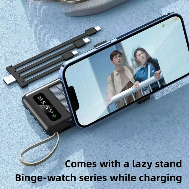 2026NEW 200000mAh Solar Power Bank Large Capacity Mobile Power Fast Charging Battery With Dual USB 4 Cables For iPhone Samsung