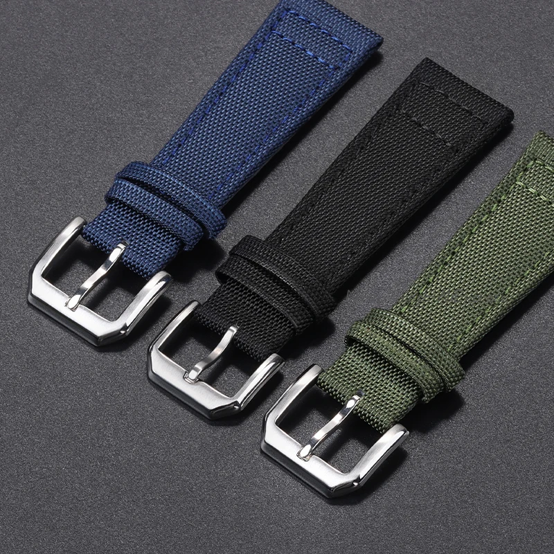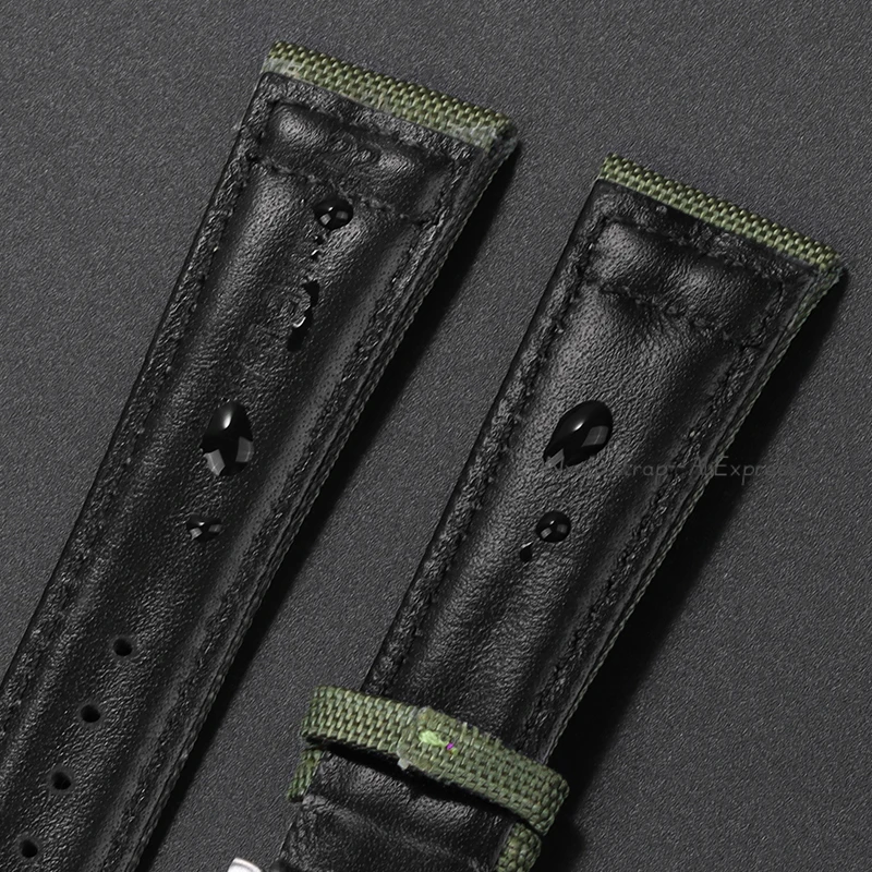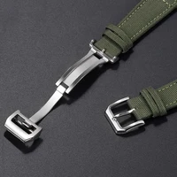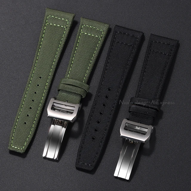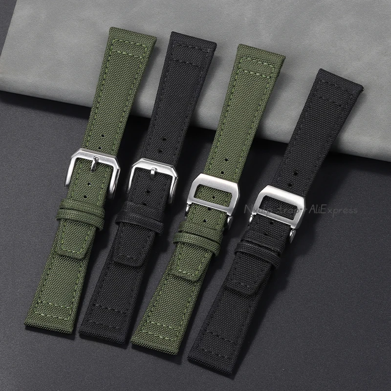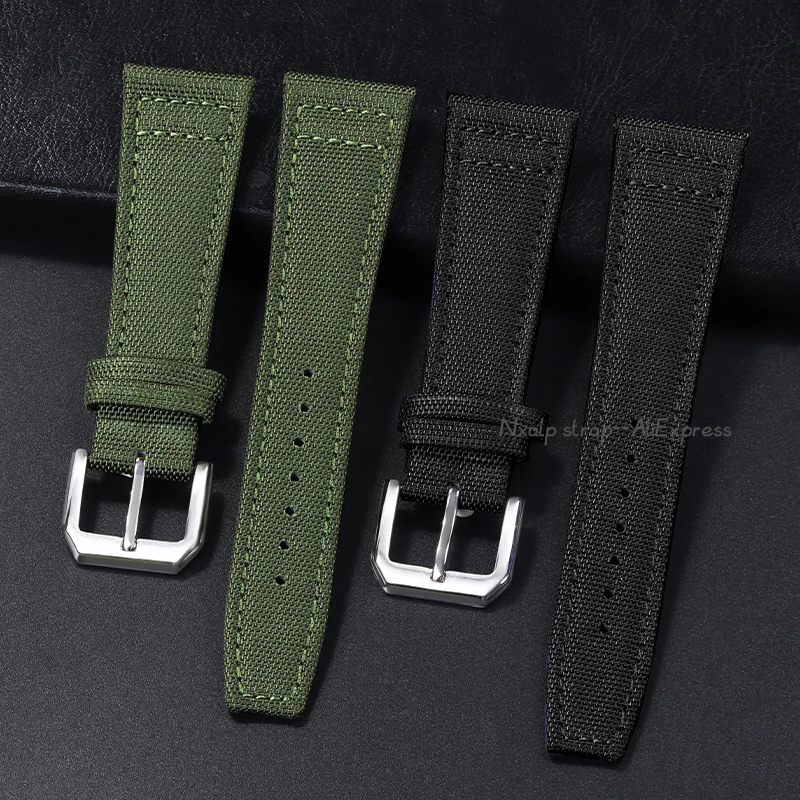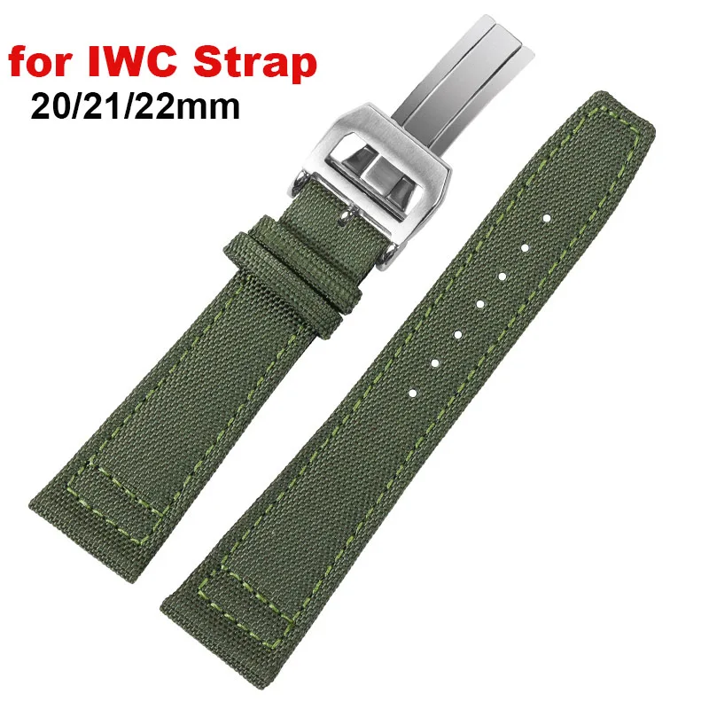 20mm 21mm 22mm Nylon Canvas Watchband for IWC PILOT Portugal PORTOFINO Fabric Watch Strap Folding Buckle Cowhide Leather Belt