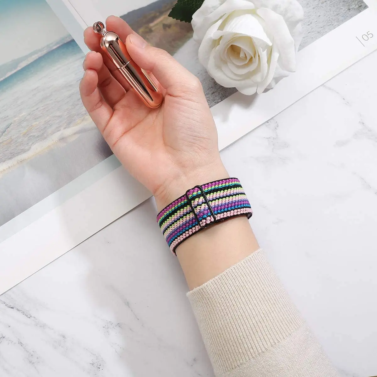 tretchy Loop Wristband Design: Simple solo loop watch band,elegance pattern looking, elastic hair watch band idea, stretch band super cute and comfortable feels like a nice bracelet. also you can for different outfits and occasions changing the band, matches various clothes