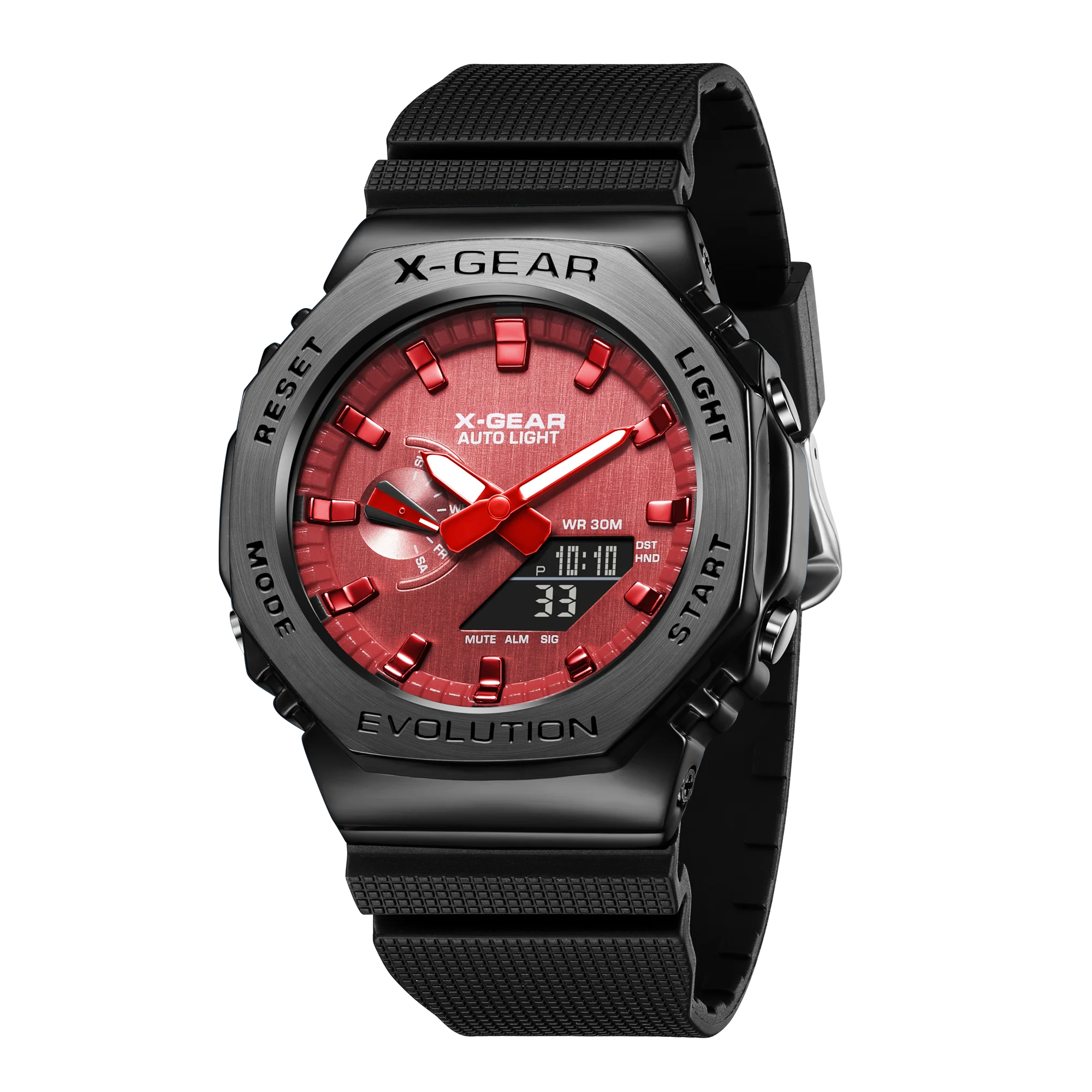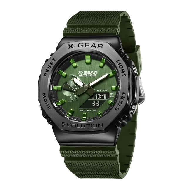 2100 Sport Digital Electronic Unisex Watch Alloy Dial LED Dual Display World Time Fully Functional Rubber