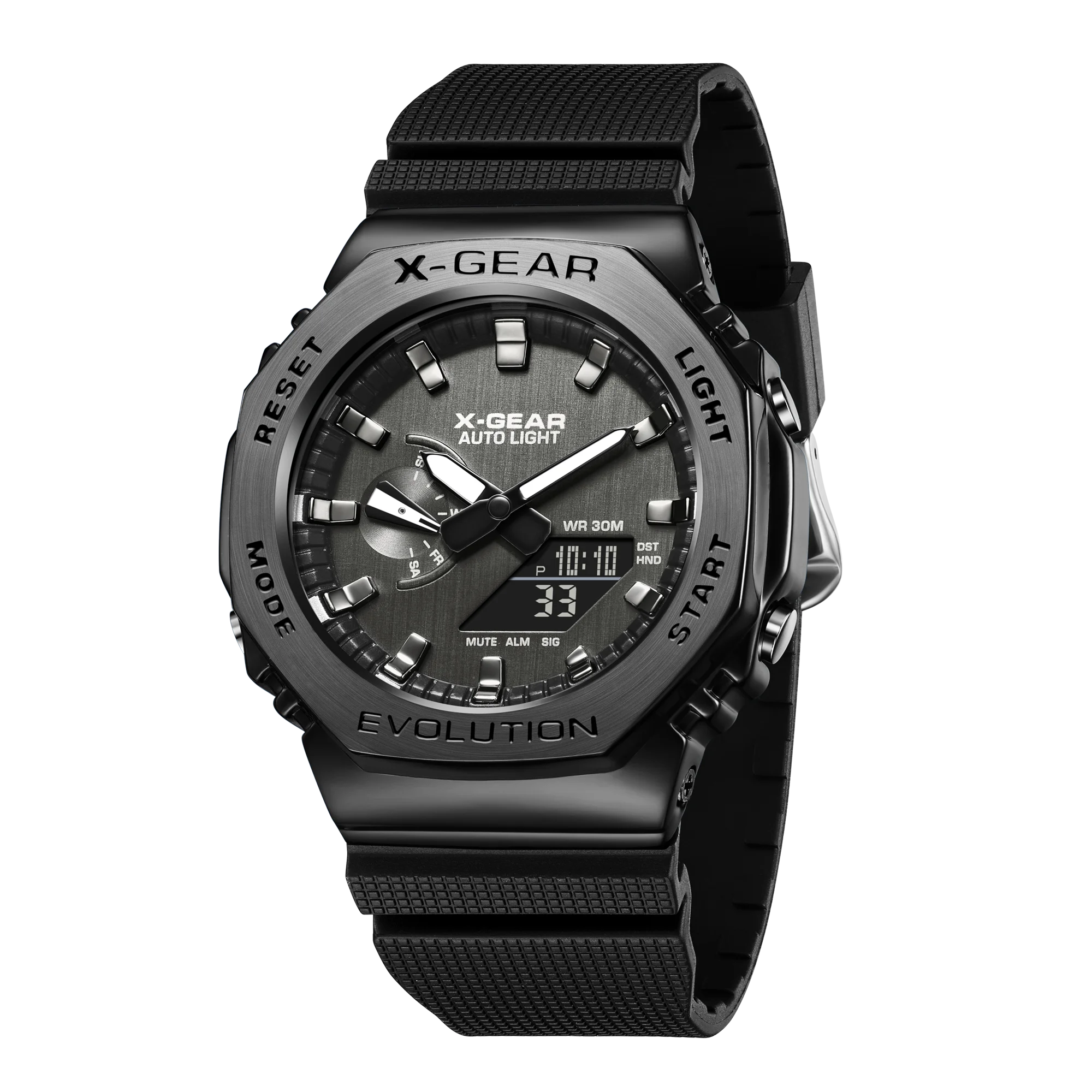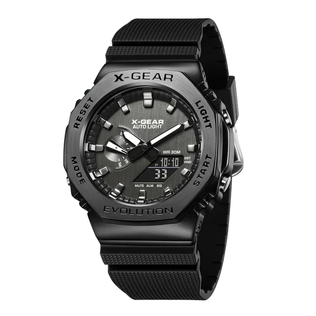 2100 Unisex Sports Digital Watch World Time Full Function Alloy LED Dial World Time Oak Series