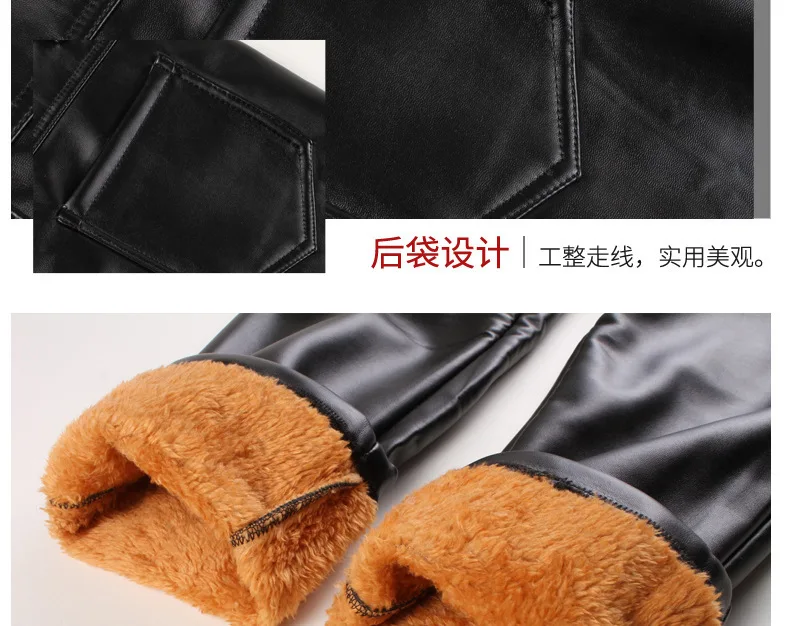 Leather Pants Men's Velvet Thickened Men's Leather Pants Work Pants Waterproof High-waisted Loose Autumn and Winter PU Leather