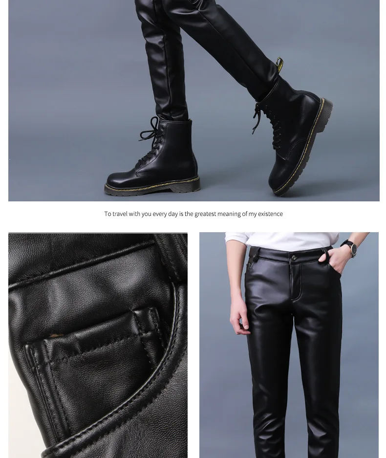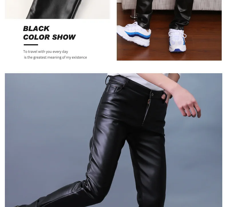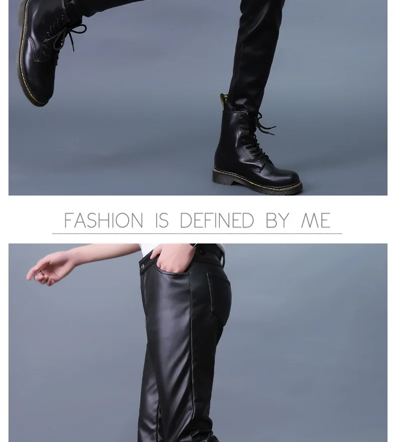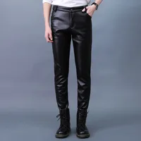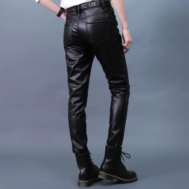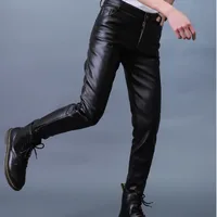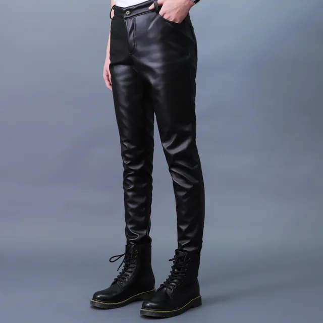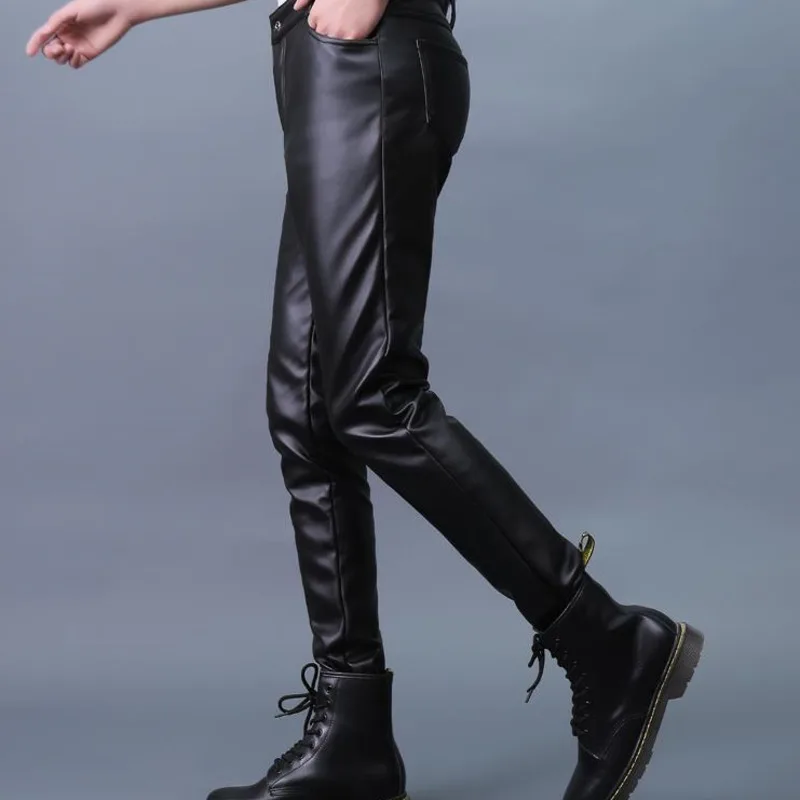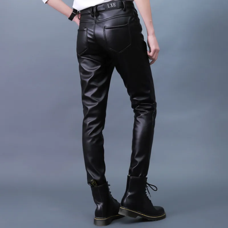 Autumn Winter Men's Leather Pants Skinny Fit Elastic Fashion PU Leather Biker's Trousers Nightclub Party & Dance Pants