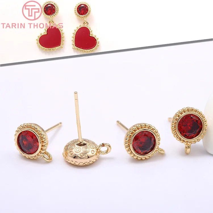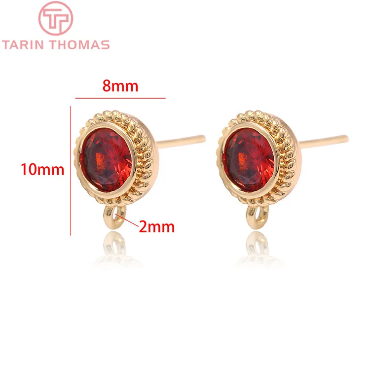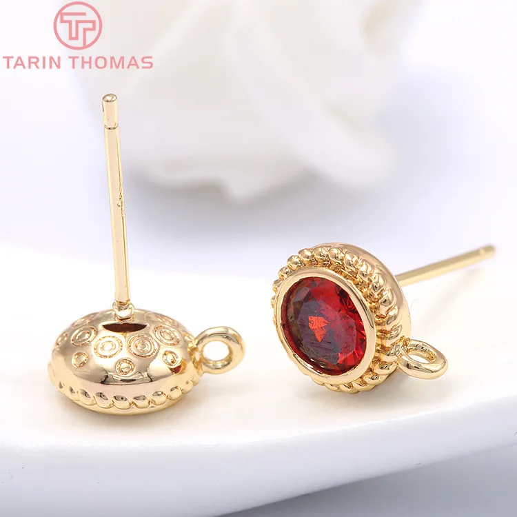 4PCS 10MM 14K Gold Color Plated Brass with Zircon Flowers Stud Earrings High Quality Diy Jewelry Findings Accessories