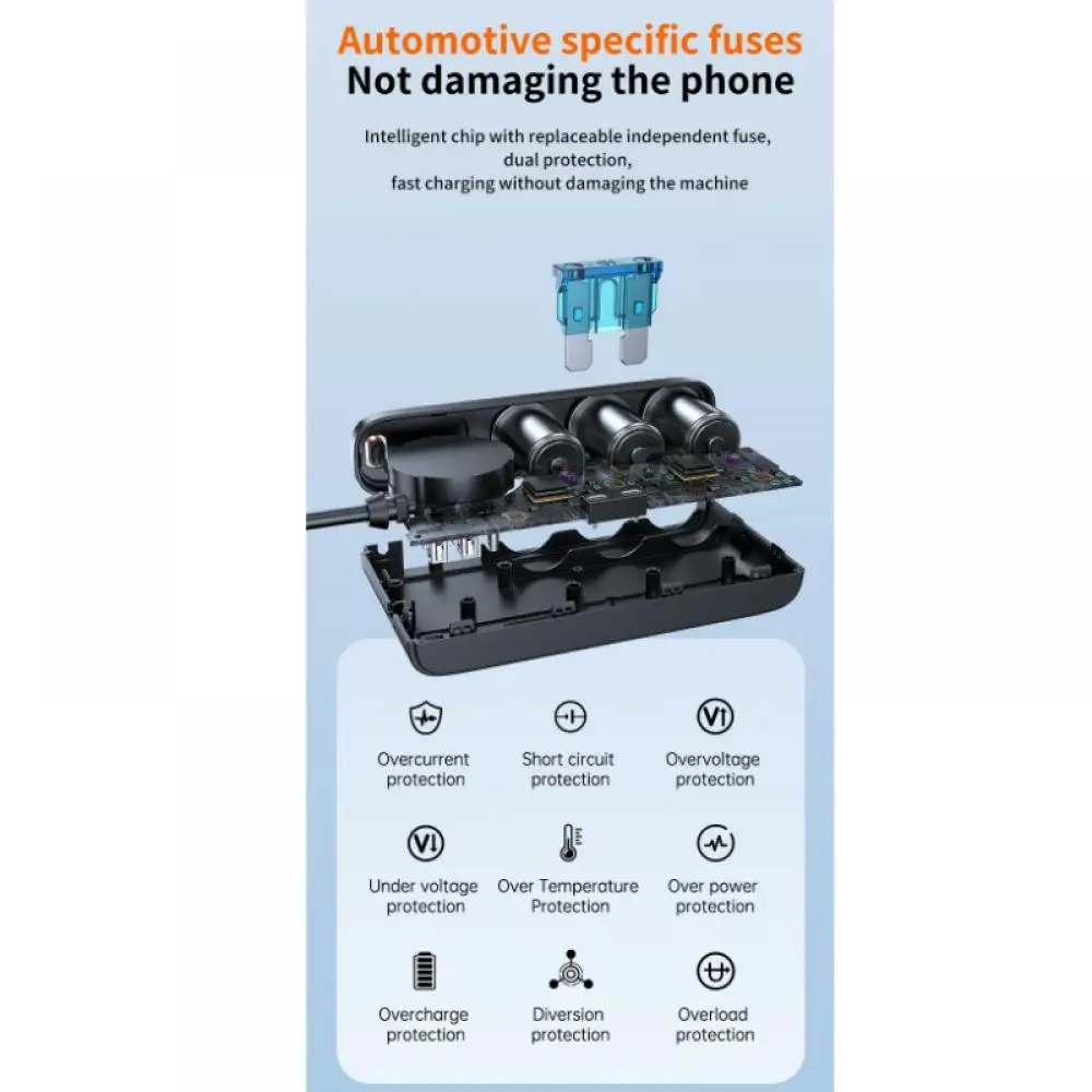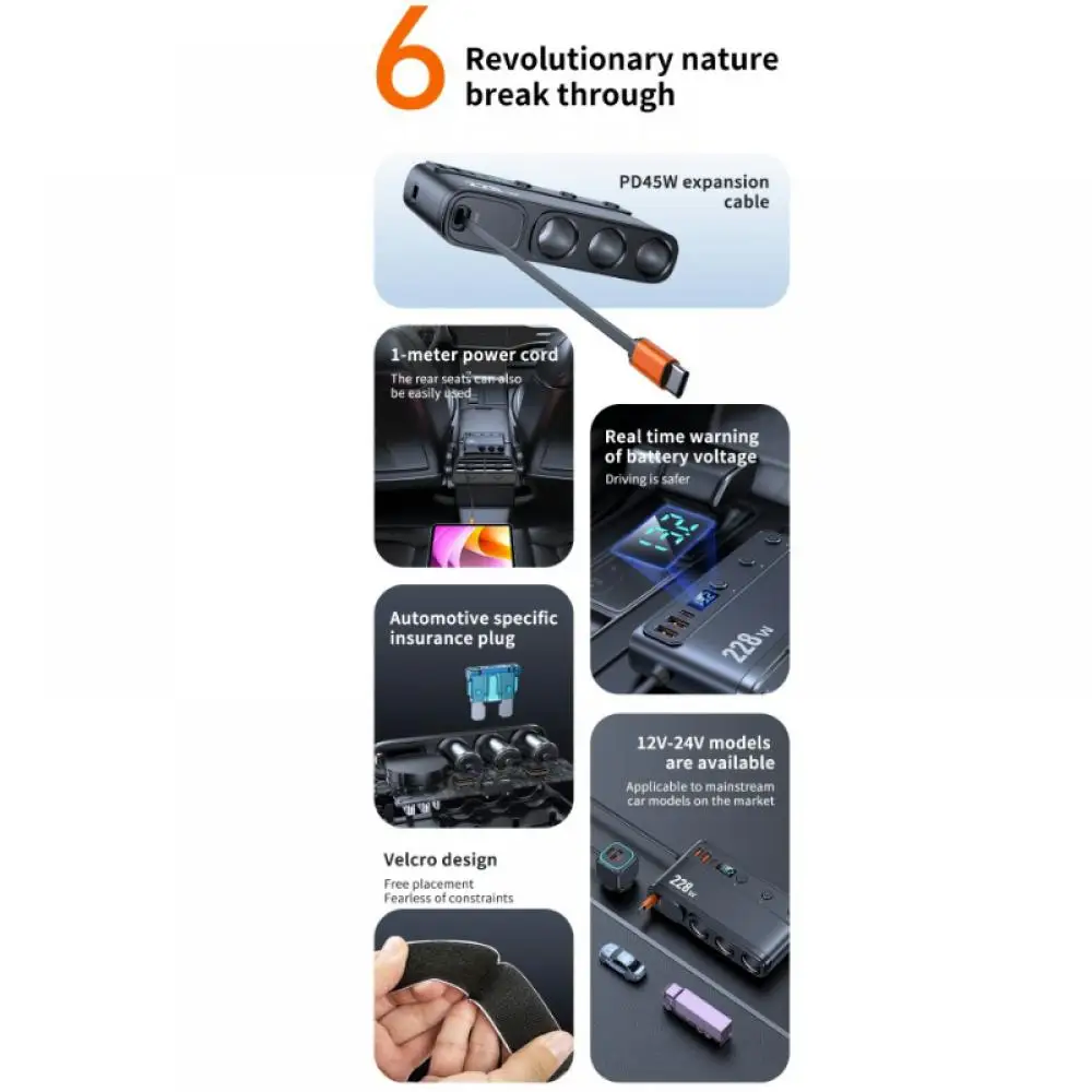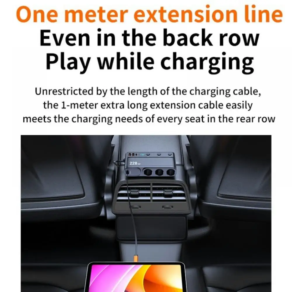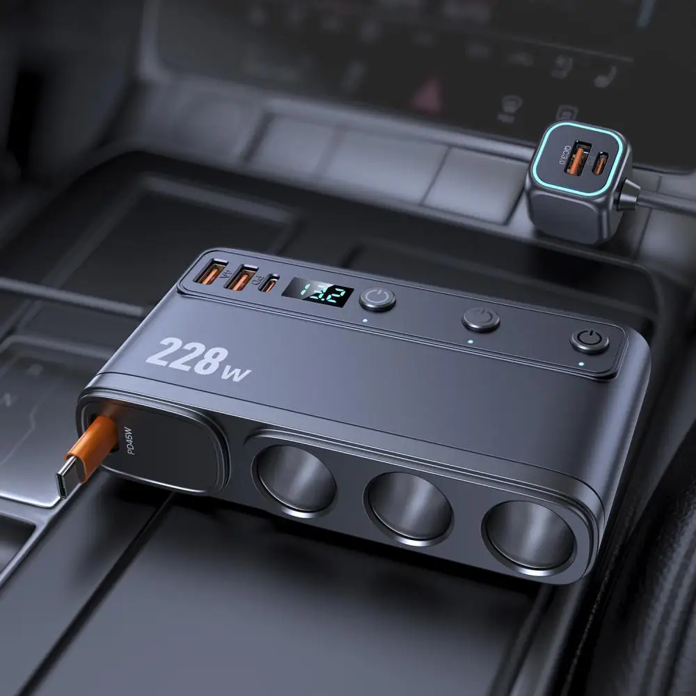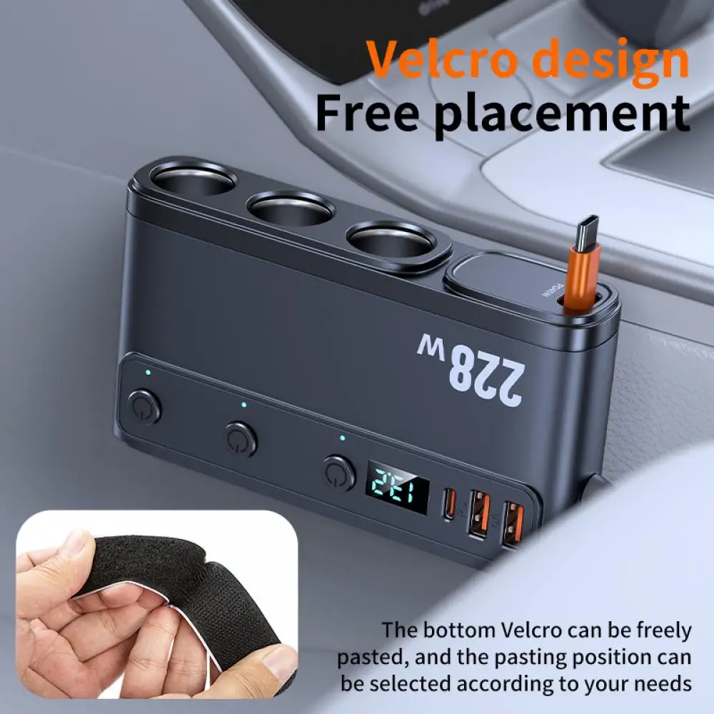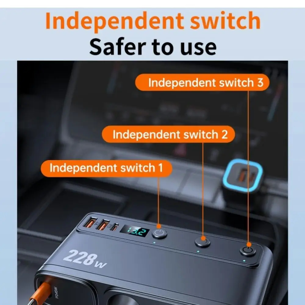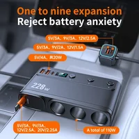 228W Car Charger Adapter 9 in 1 PD 3 Socket Cigarette Lighter Splitter Charge Independent Switches 12V