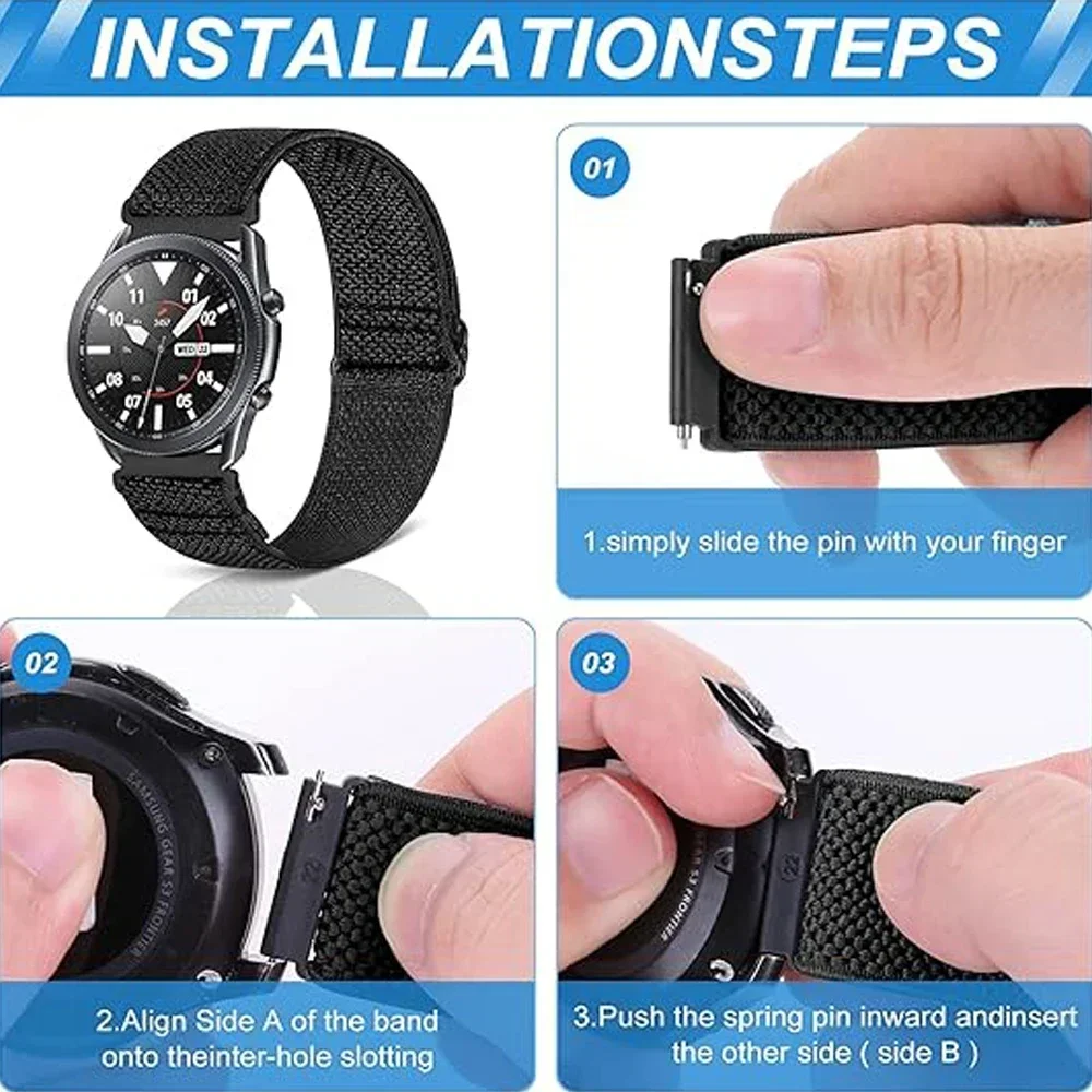 22mm Strap For Xiaomi Watch S4 Sport/S3/S2/S1/Active/Mi Color 2/Watch 2 Pro Nylon Elastic Bracele for Huawei GT 5/4/3/2 Pro band