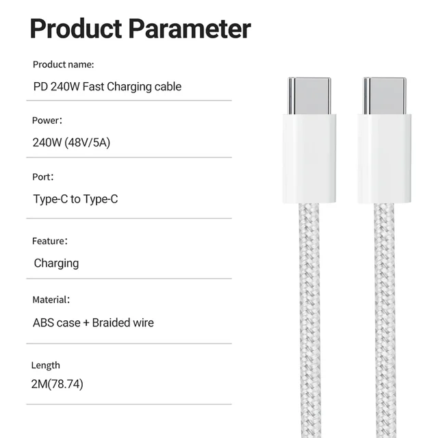 PD 240W USB C to USB C Charging Cable 2M with retail box