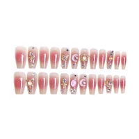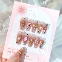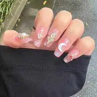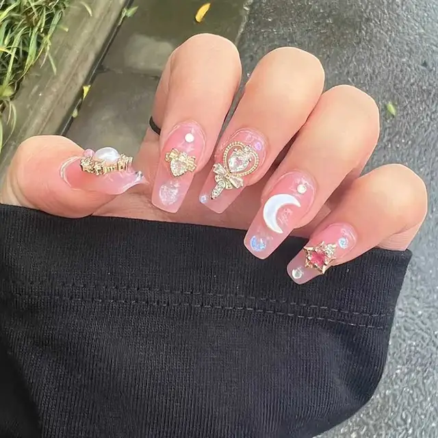 24pcs Handmade Sailor Star Moon Press on Nails Long Coffin Shiny Daimond Ballet Fingernails Full Cover Reusable Nail False Tips