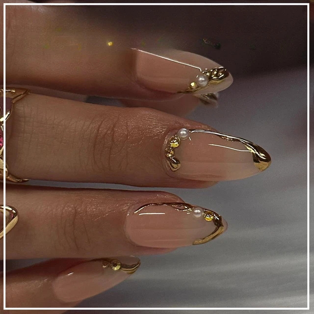 24pcs Sweet False Nail Patches Detachable Fake Nail Tips With Bowknots Love Heart Pearl Design Pink Almond Korean Press On Nail
