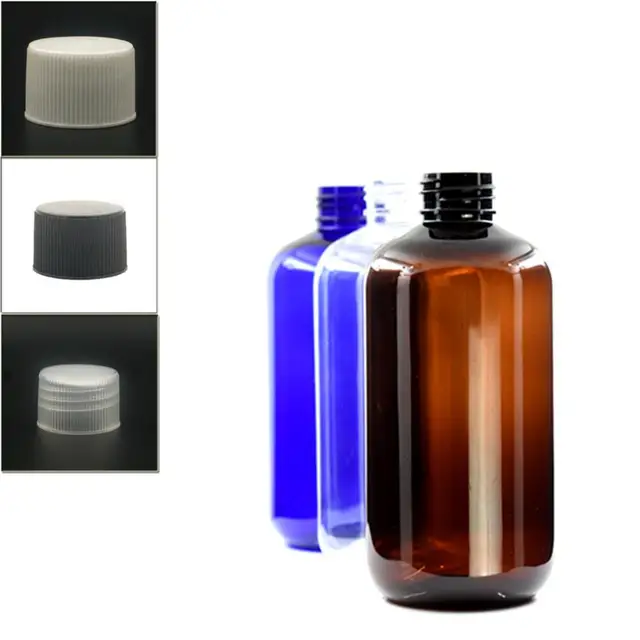 250ml 500ml 8/16oz empty boston round Plastic blue/amber clear PET bottles with child resistant aluminum