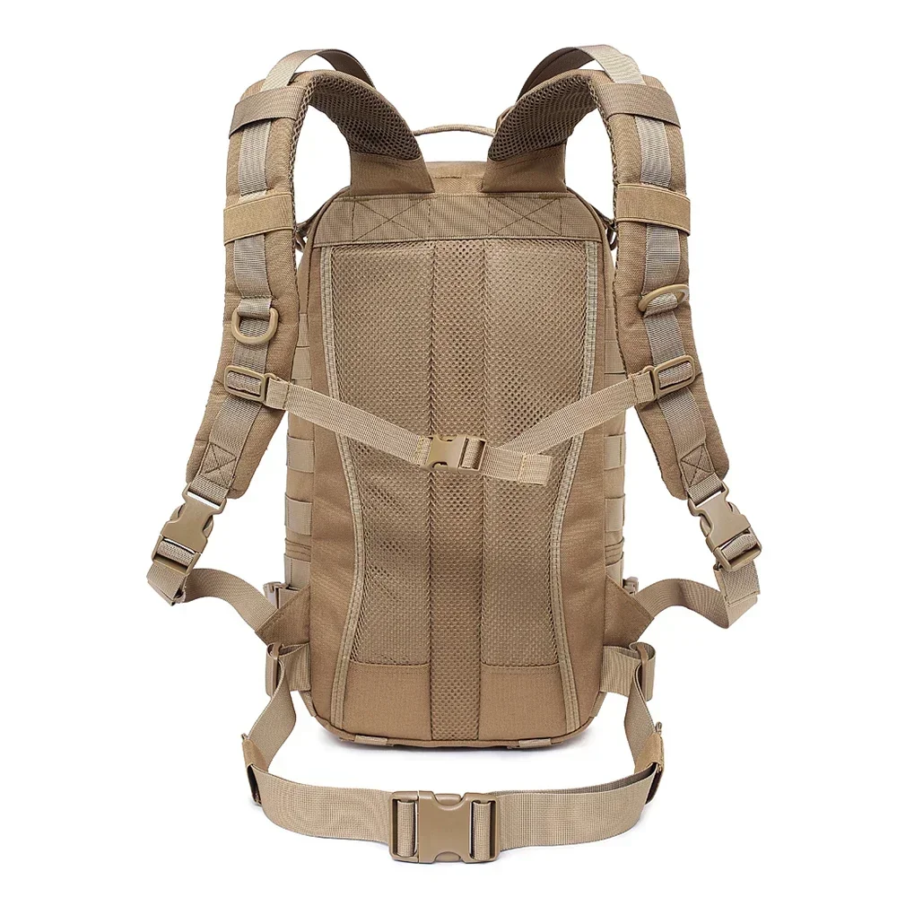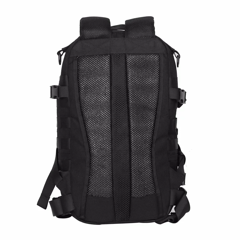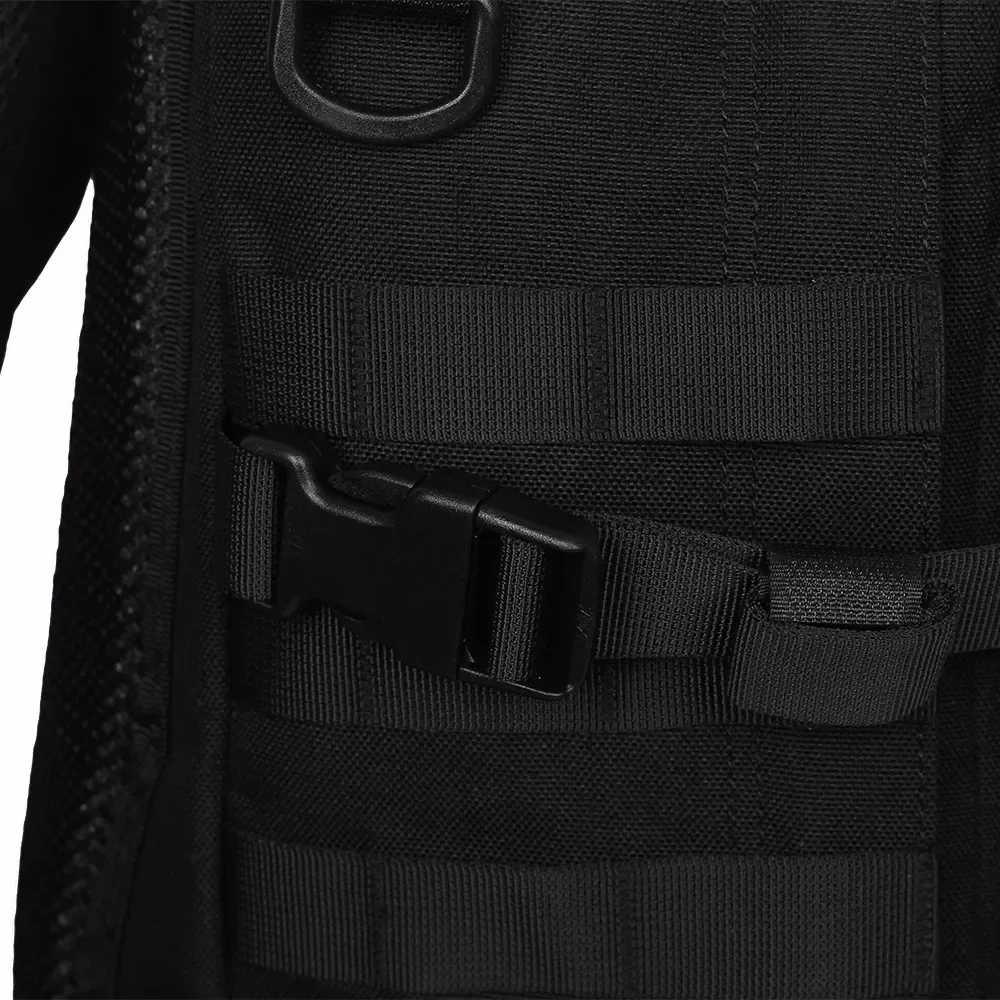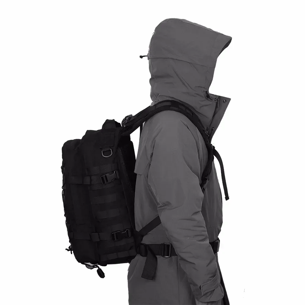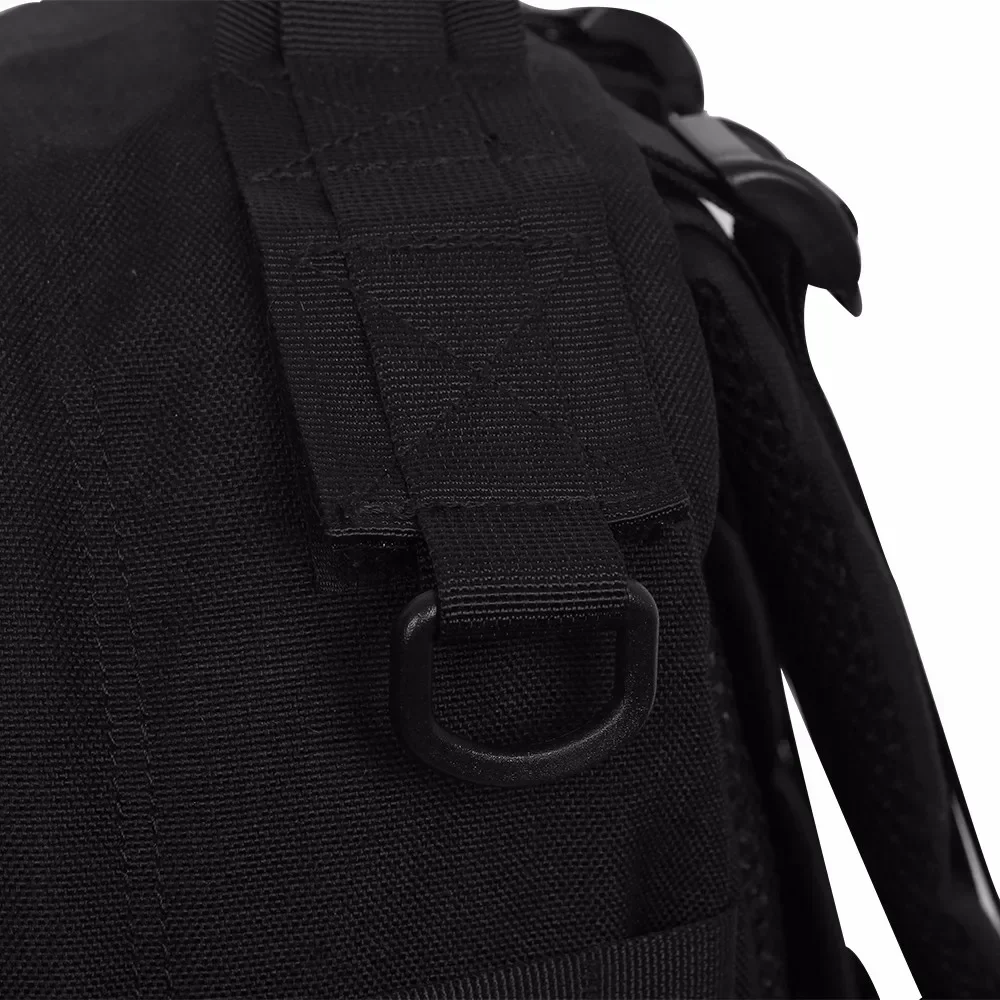 S-shape padded shoulder straps help you spread the load of your backpack in longtime use. Adjustable sternum strap can stabilize your assault backpack.