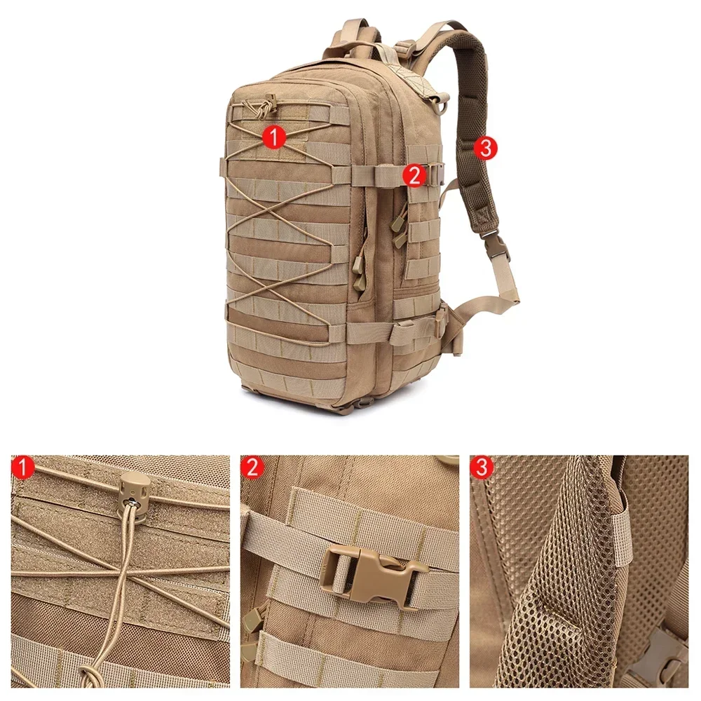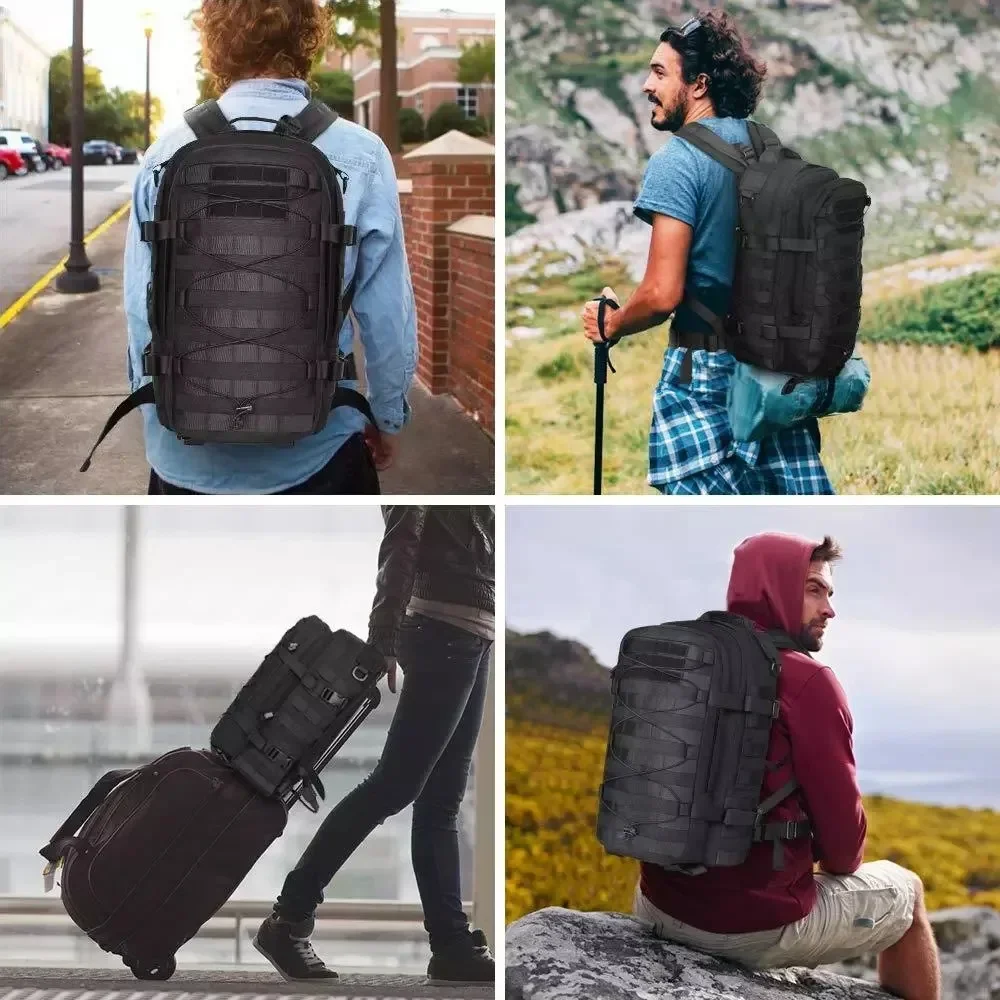 The backpack can be used as bug out bag backpack, range bag, hunting backpack. It is ideal for various outdoor activities such as vacation camping, hiking, travel, fishing trekking , mountaineering, also suitable for daily use, such as school, shopping etc.