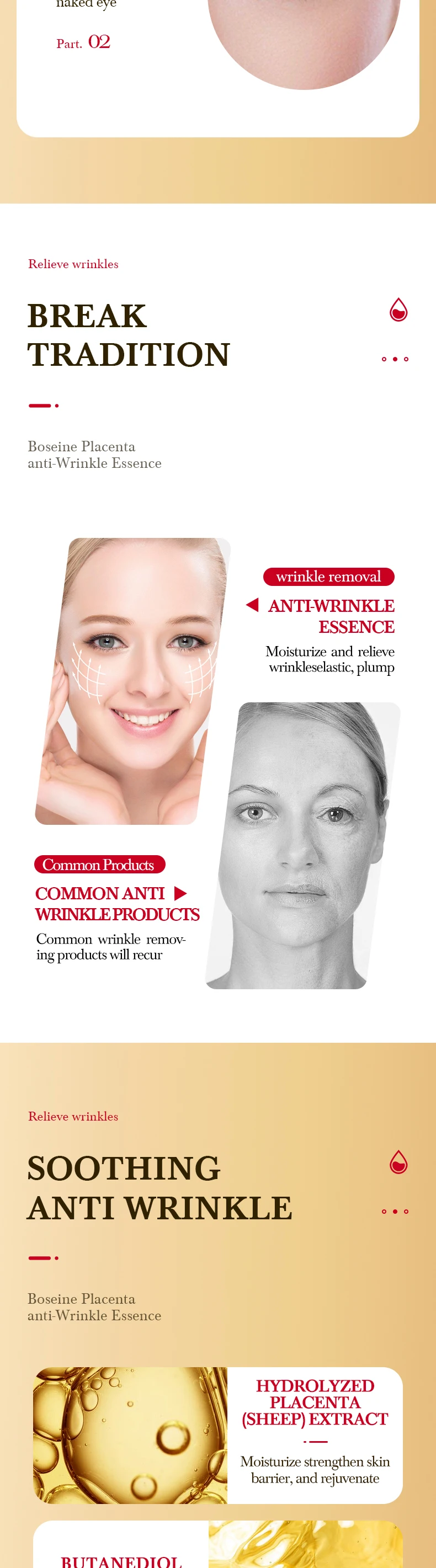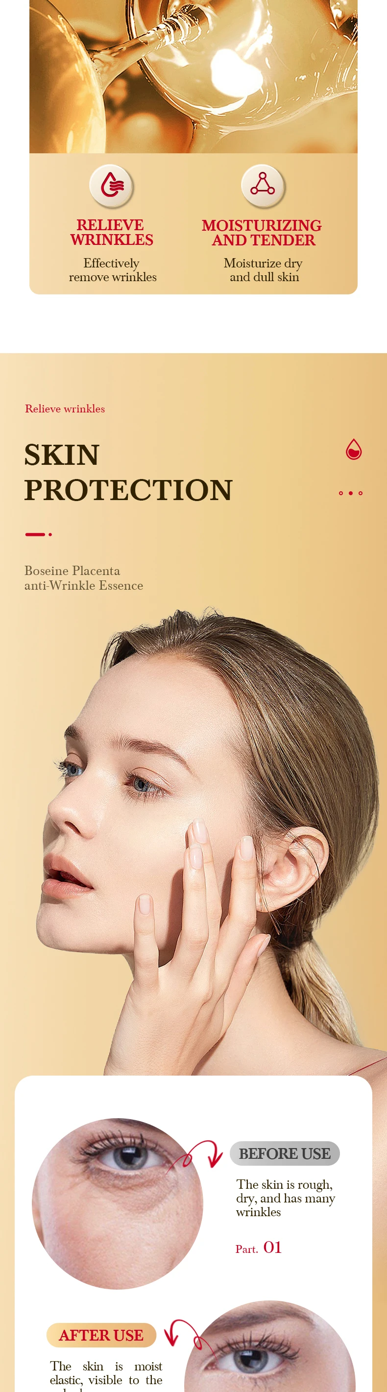1.Enhance skin elasticity, reduce wrinkle formation, and keep the skin tight.