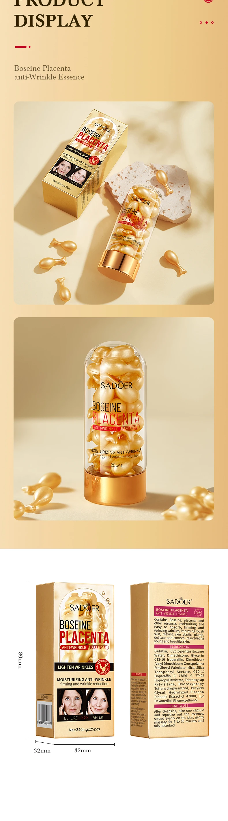 25 Placenta Capsule Serum Lightening Spots Acne Serum Firming and Brightening Skin Care Cosmetics Facial Serum