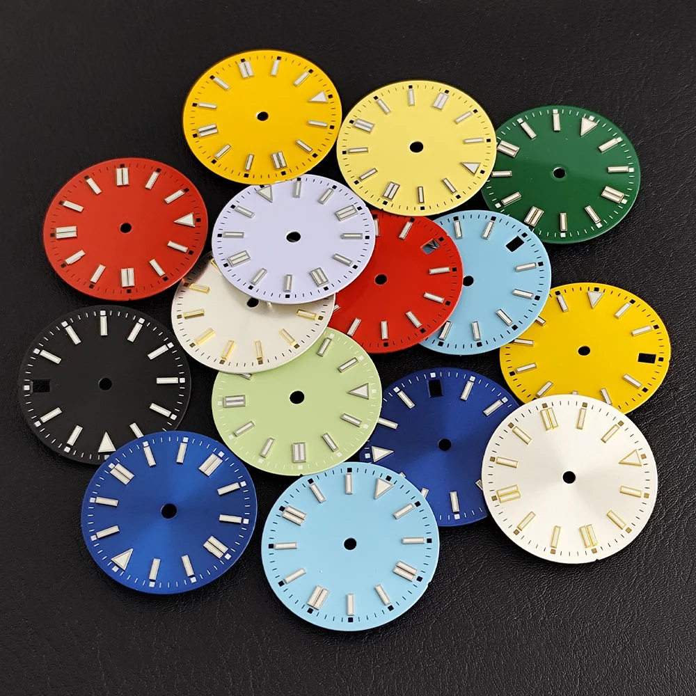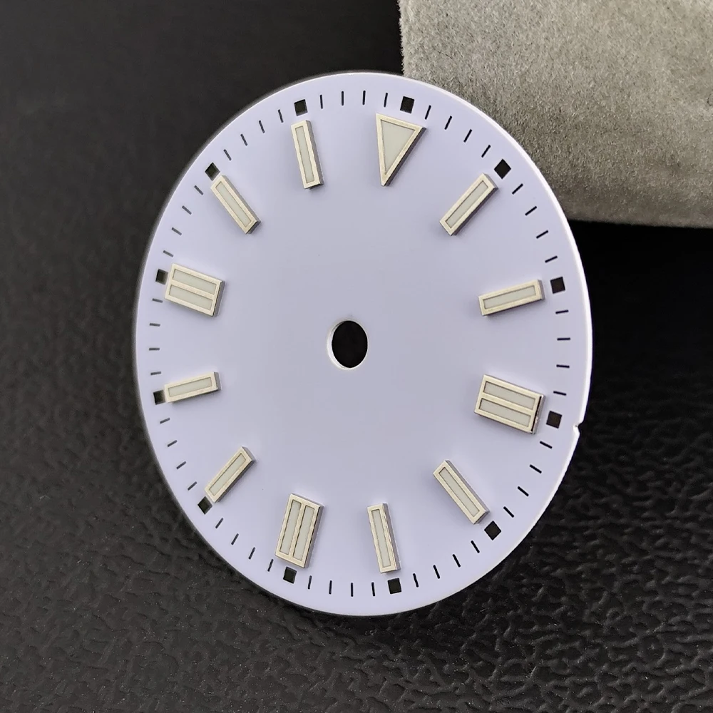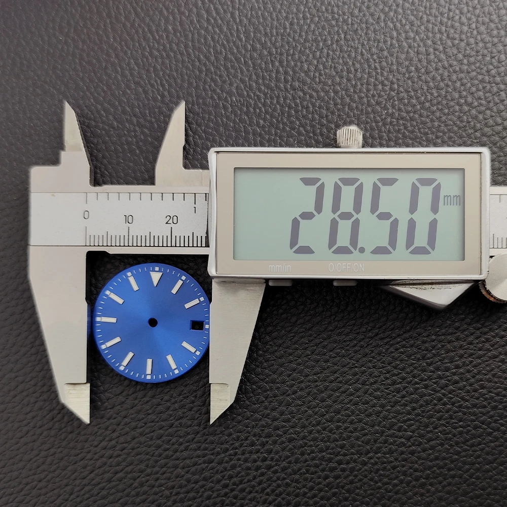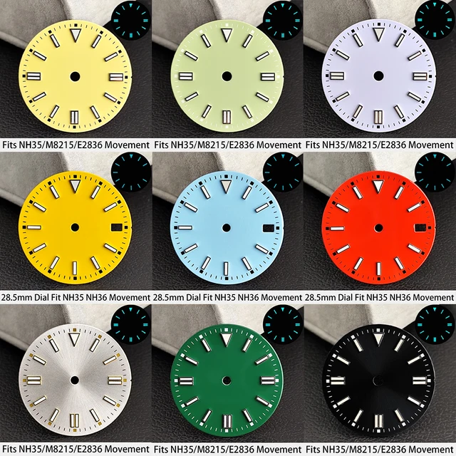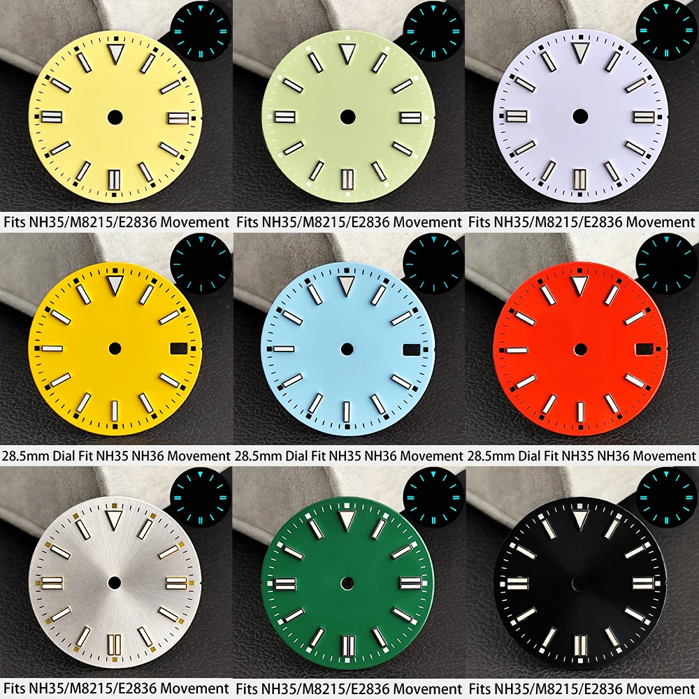 28.5mm Luminous Watch Dial Fits NH35/M8215/E2836 Movement Watch Accessories Silvery Gold NH35 Hands Wristwatches