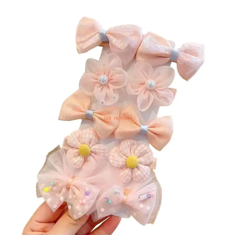 Kids Flower Hair Clip Set: The hair clip set featured with dream sweet color and elegant flower & bowknot hair clip, 10pieces/set, 7 optional color to choose, lovely that can easily fit for children girls different outfit and meet their daily use.