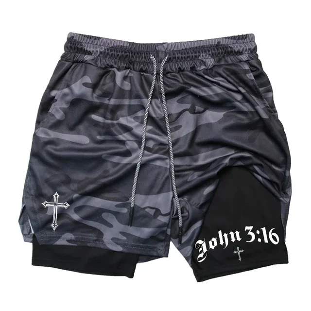 2in1 Running Workout Gym Shorts Men Athletic Performance Shorts summer with Phone running Pocket Towel Loop Workout Activewear