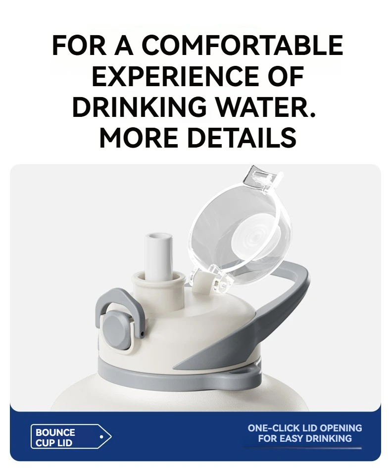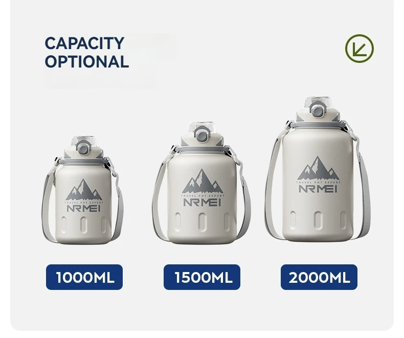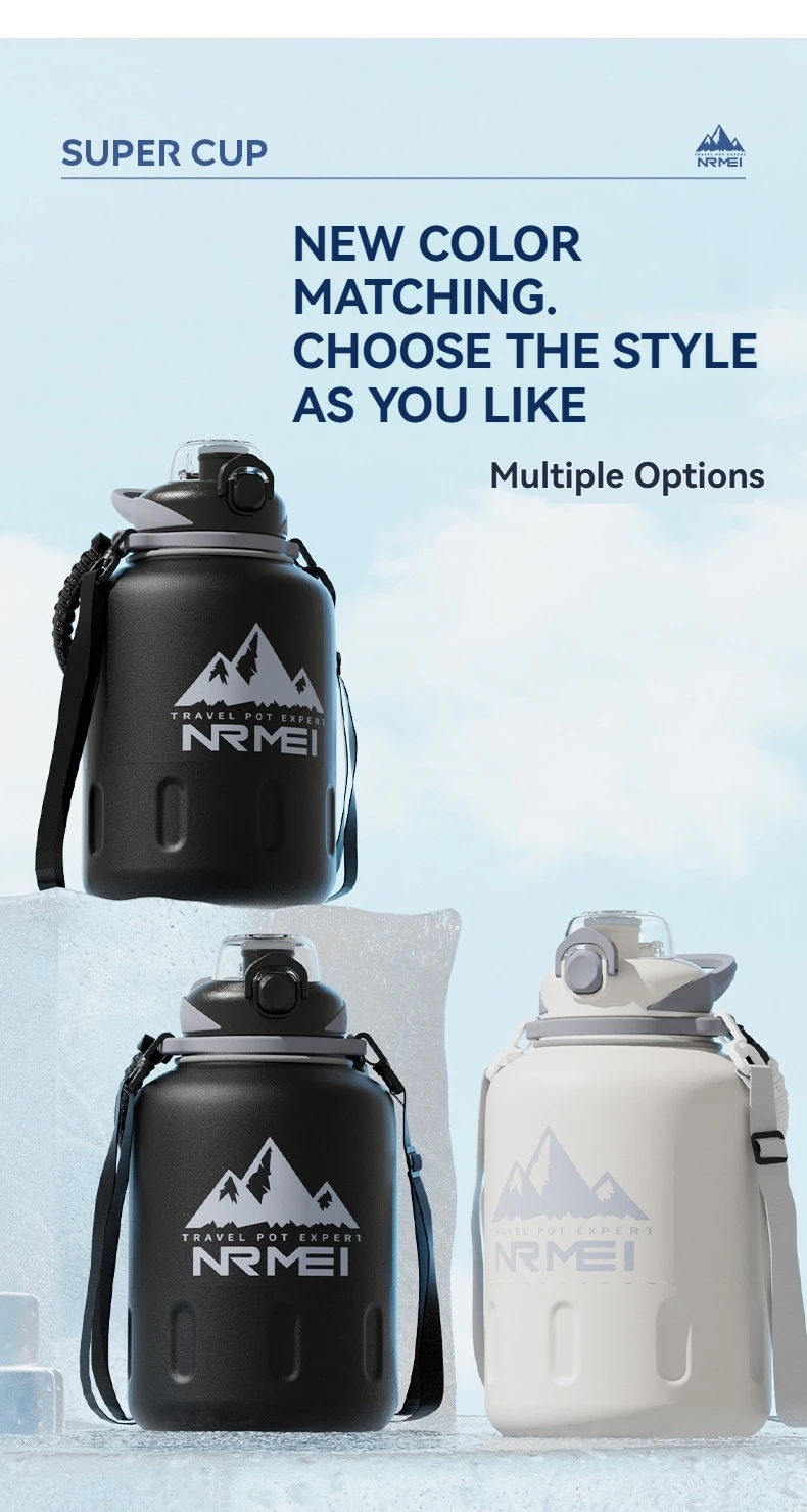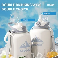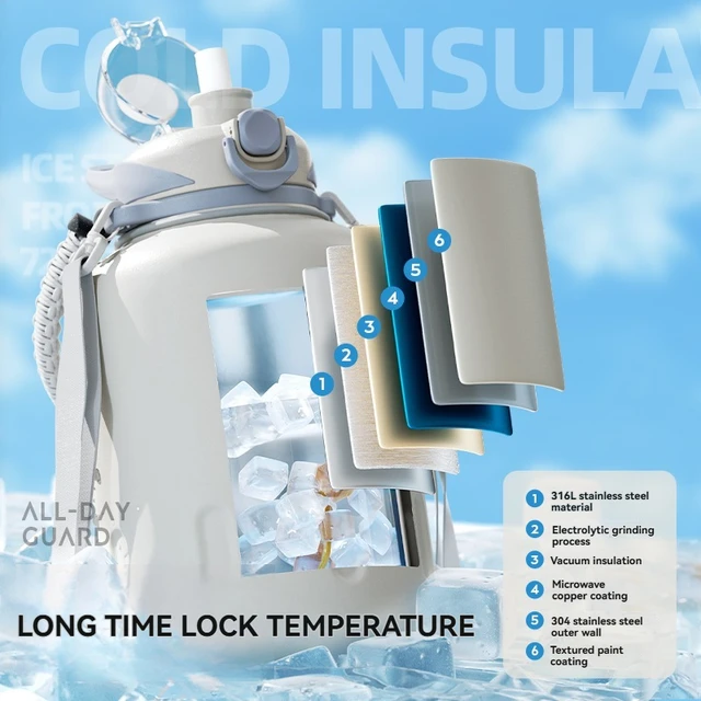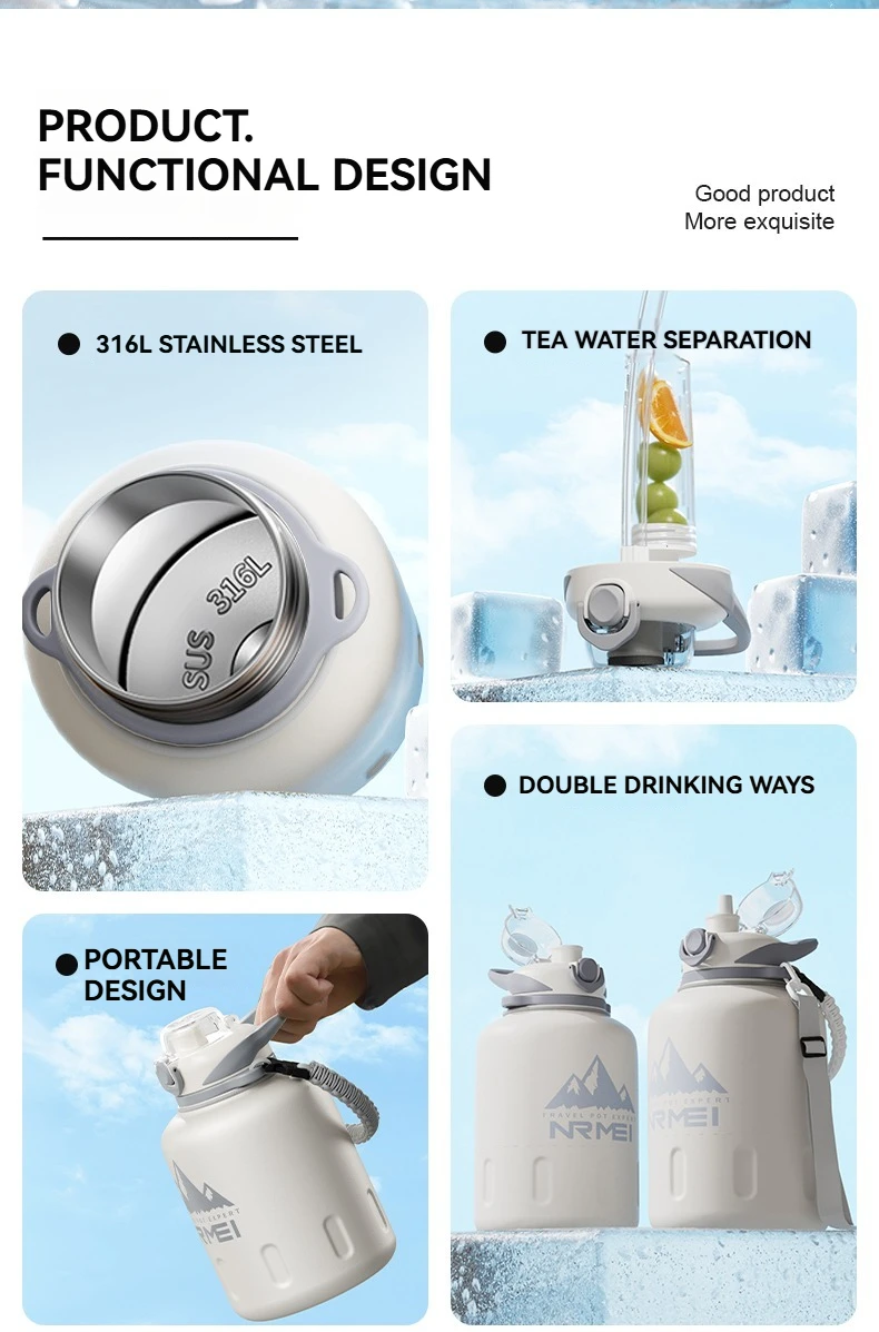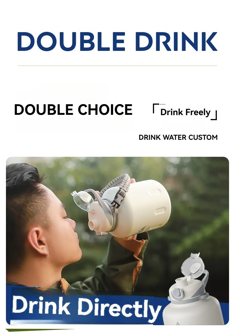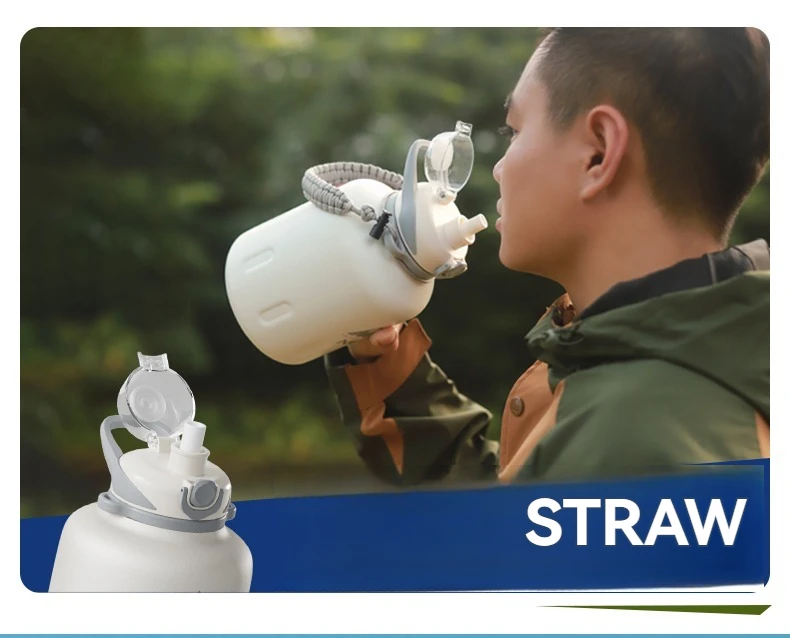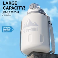 2L Stainless Steel Bottle Thermos Insulated Tumbler Outdoor Sports 316 Vacuum Flask with Rope and Straw