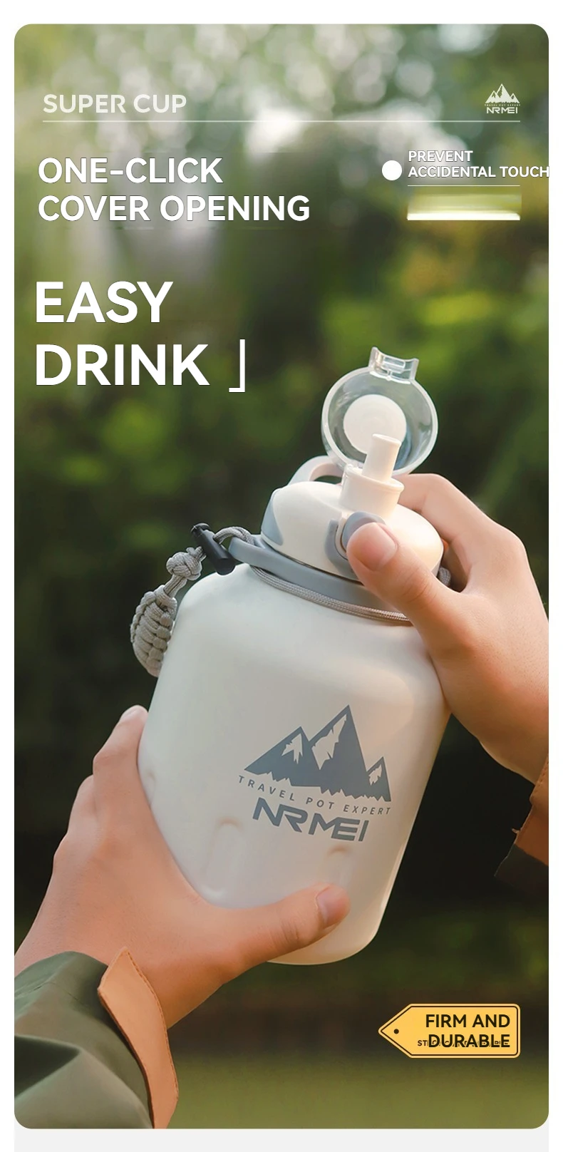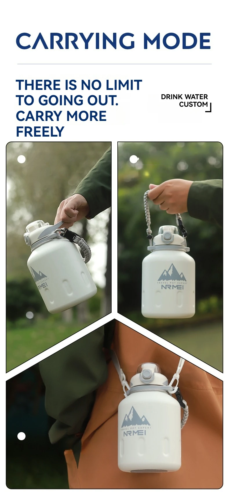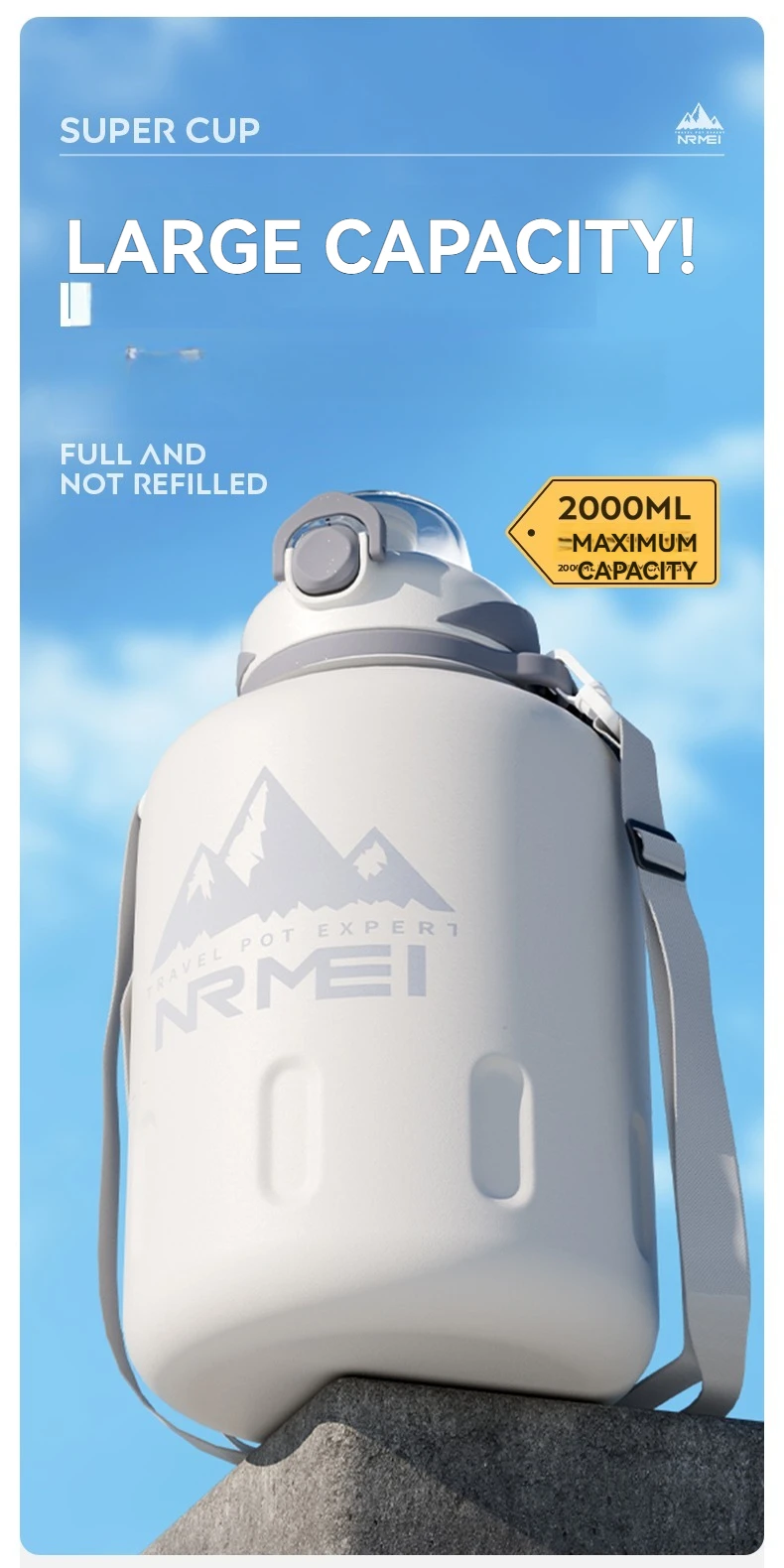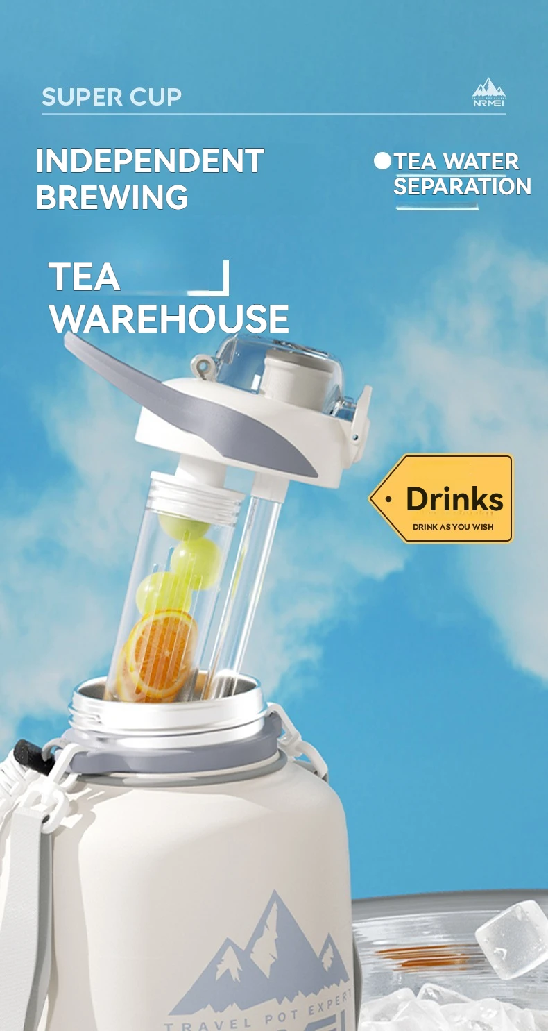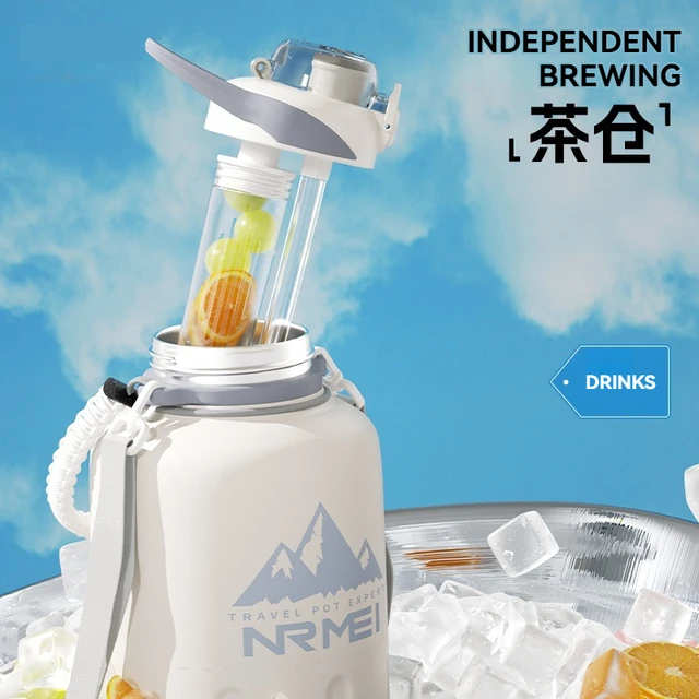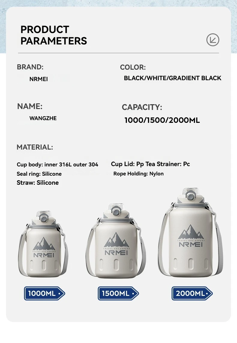 2L Stainless Steel Bottle Thermos Insulated Tumbler Outdoor Sports 316 Vacuum Flask with Rope and Straw