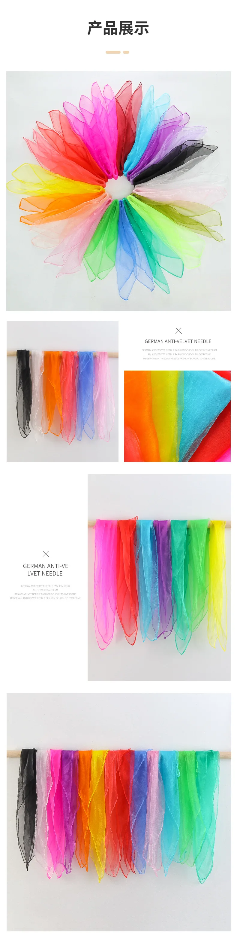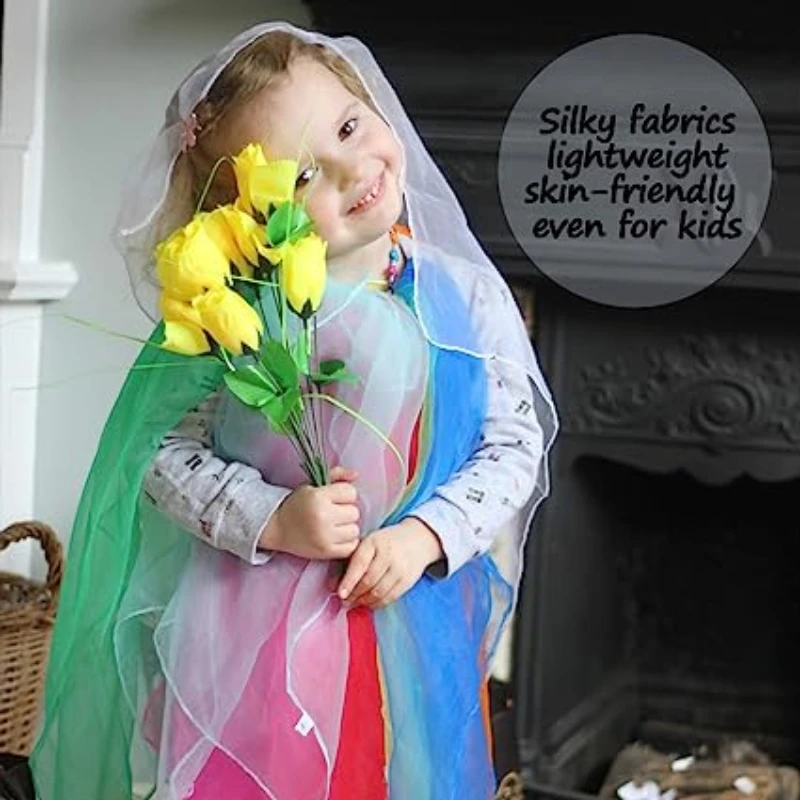 ◎ These scarves are made from soft yarns,comfortable to wear, thin for breath freely. It is lightweight that you may can not feel it when you wear it. Safe for children. ● The colors and texture are enjoyed at any age. This square scarves are applicable in our daily life, suitable for kindergarten, dance group, magic performance, square juggling dance, musical play, etc .you can share them with your friends!