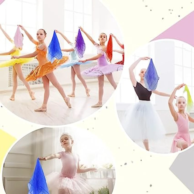 2PCS 45/60/70CM Sheer Transparent Kids Gymnastics Square Scarf Dance Interactive Scarves Handkerchief Outdoor Scarves 21Colors