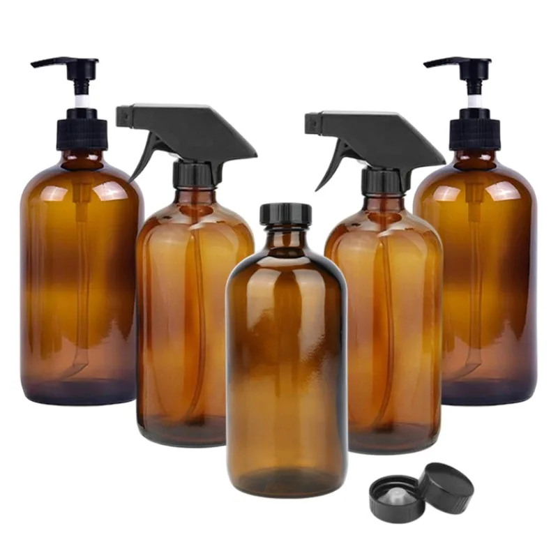 Type D : 1pcs 500ml Amber Glass trigger sprayer bottle + 1pcs 500ml Amber Glass lotion pump bottle