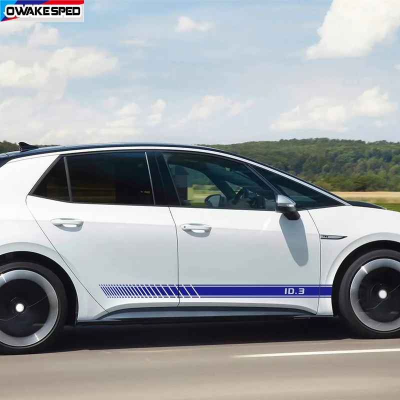 2PCS Car Body Door Side Skirt Sticker For Volkswagen ID.3 pro S Racing Sport Stripes Customized Accessories DIY Vinyl Decals