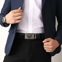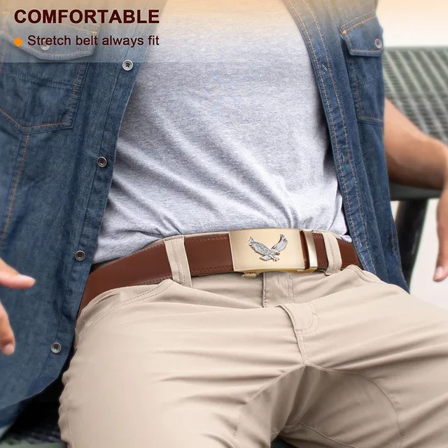 2pcs Genuine Leather Ratchet Belt for Men - Adjustable Automatic Buckle, Versatile Casual Business Style,  Durable Alloy Buckle